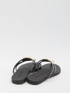 Step into effortless luxury with these DG Logo Thong Sandals from Dolce & Gabbana. Crafted in sleek black with striking yellow gold-tone hardware, these flat sandals feature the iconic DG logo plaque that adds a touch of designer sophistication to any ensemble.