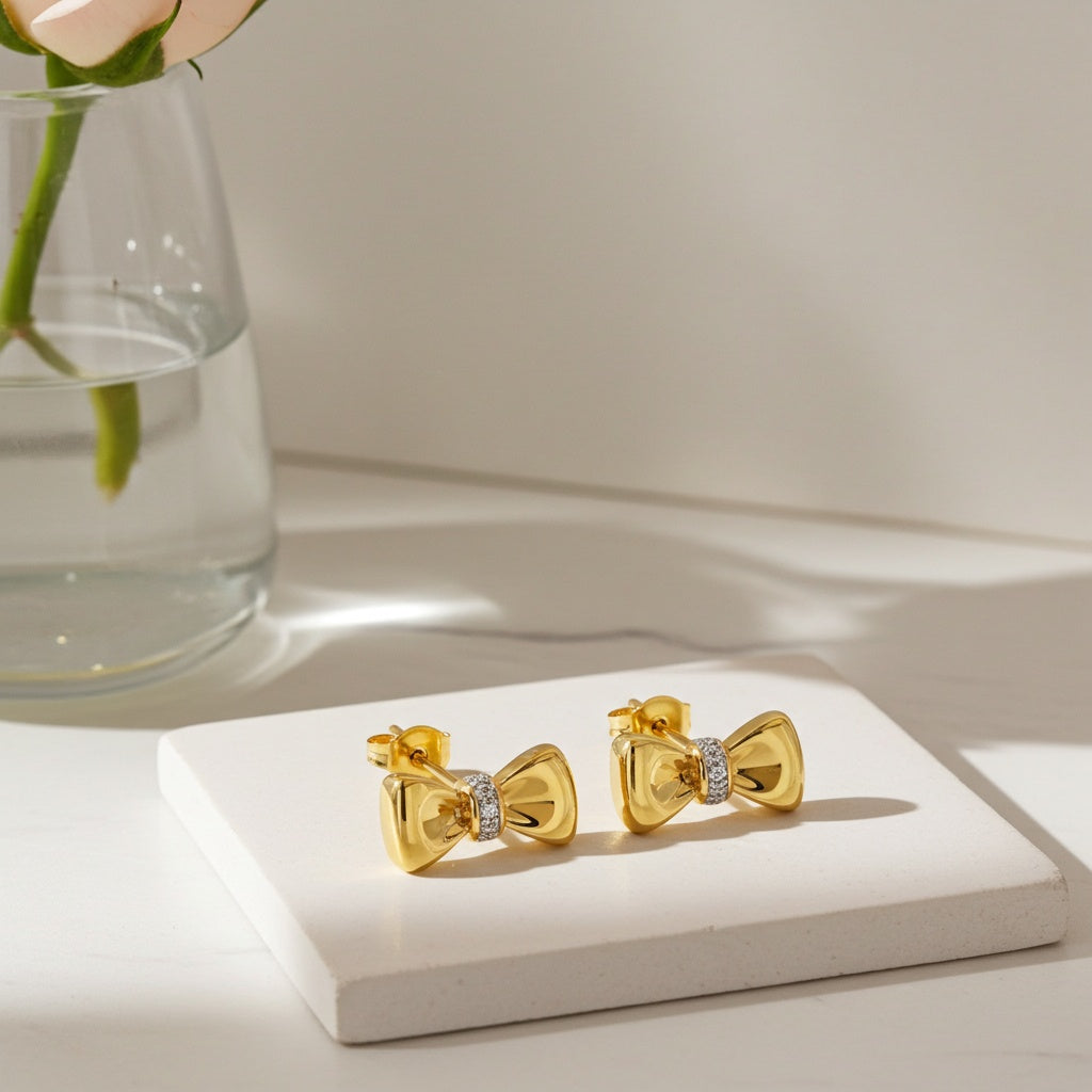 Diamond Accent Bow Tie Stud Earrings in 10k Yellow Gold