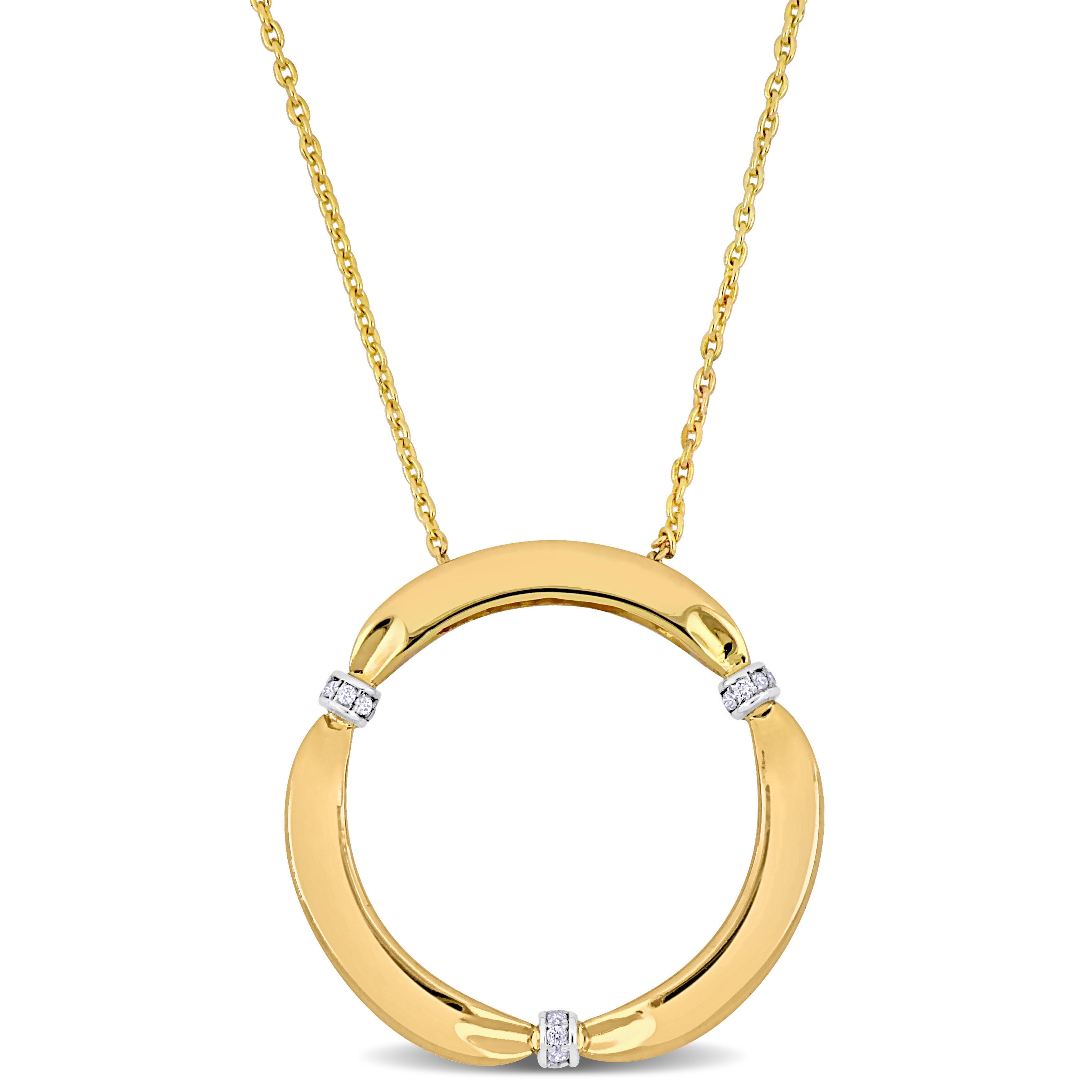 Diamond Accent Open Circle Station Pendant Necklace 14k Yellow Gold