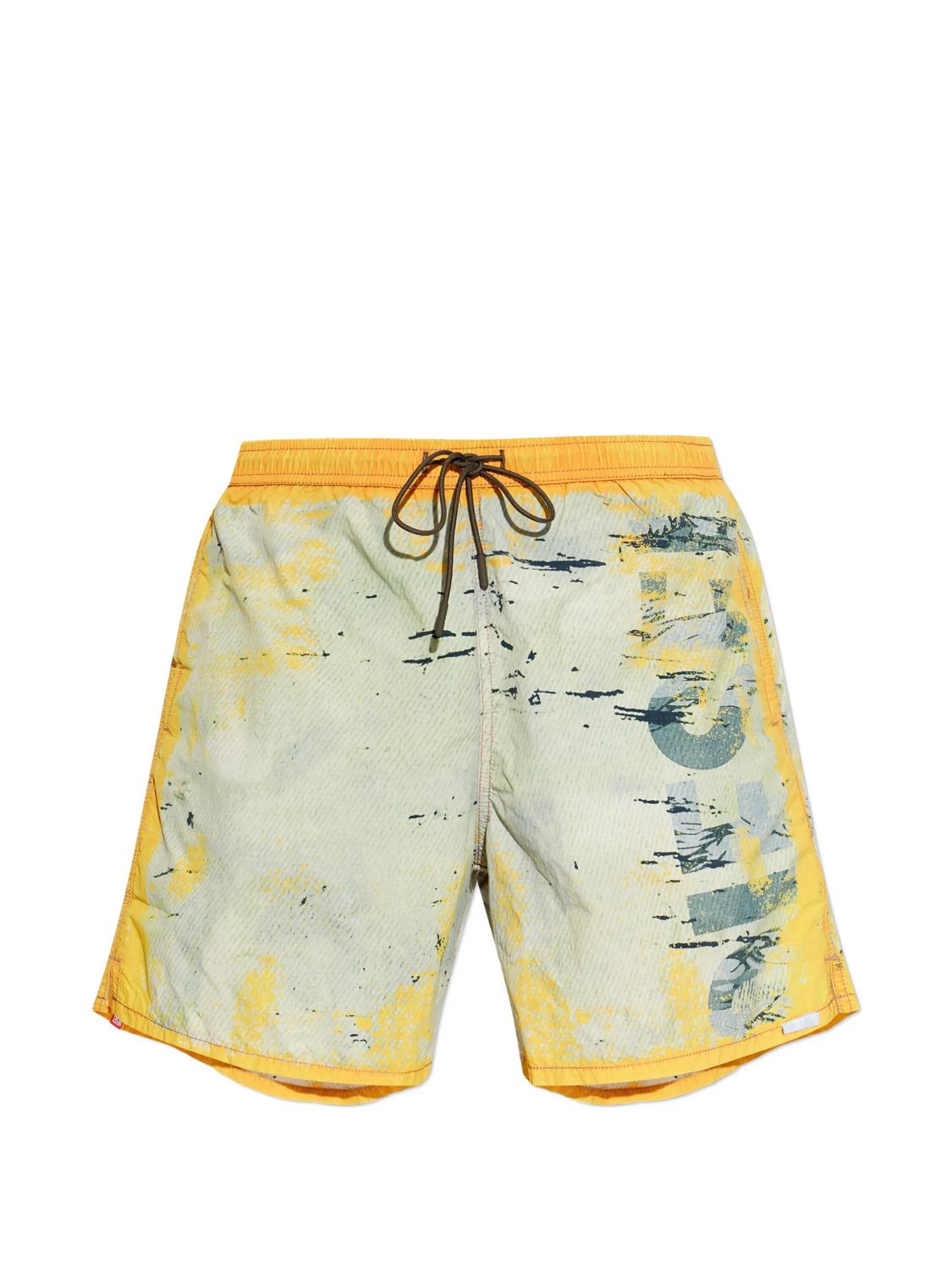 Make a bold statement poolside or beachside with the Diesel SOCCER-41-UTLT Swim Shorts. These eye-catching swim shorts feature a unique paint-splatter design in vibrant yellow and blue tones, showcasing Diesel's signature edgy aesthetic.