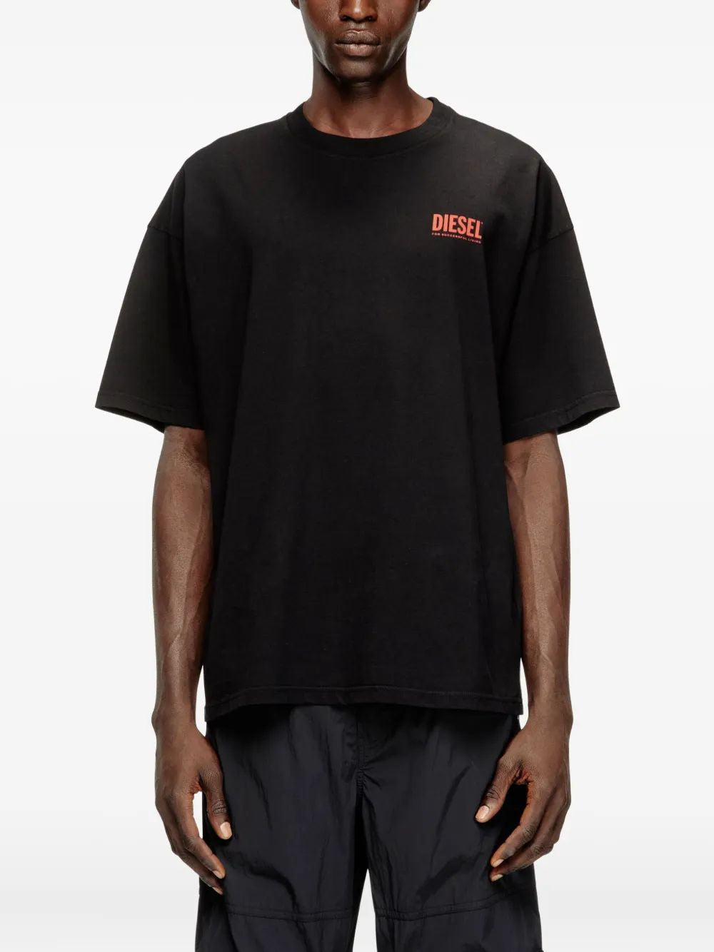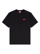 This classic black tee features a relaxed crew neckline, short sleeves, and a distinctive red Diesel logo at the chest, adding a subtle yet recognizable designer touch to your casual looks.