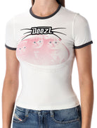 THE DIESEL T-UNCUTIES-LONG-R13 IS A SLIM-FIT T-SHIRT CRAFTED FROM STRETCH COTTON FOR COMFORT AND SHAPE RETENTION. IT FEATURES CONTRASTING RIBBED TRIMS AT THE CREW NECK AND SHORT SLEEVES, ADDING A SPORTY TOUCH. THE FRONT SHOWCASES A DIGITAL AND FLOCK PRINT OF PLAYFUL KITTENS ABOVE THE BRAND LOGO, WHILE THE LEFT SLEEVE IS ADORNED WITH AN EMBROIDERED OVAL D EMBLEM. PERFECT FOR ADDING A FUN, GRAPHIC TWIST TO CASUAL OUTFITS.