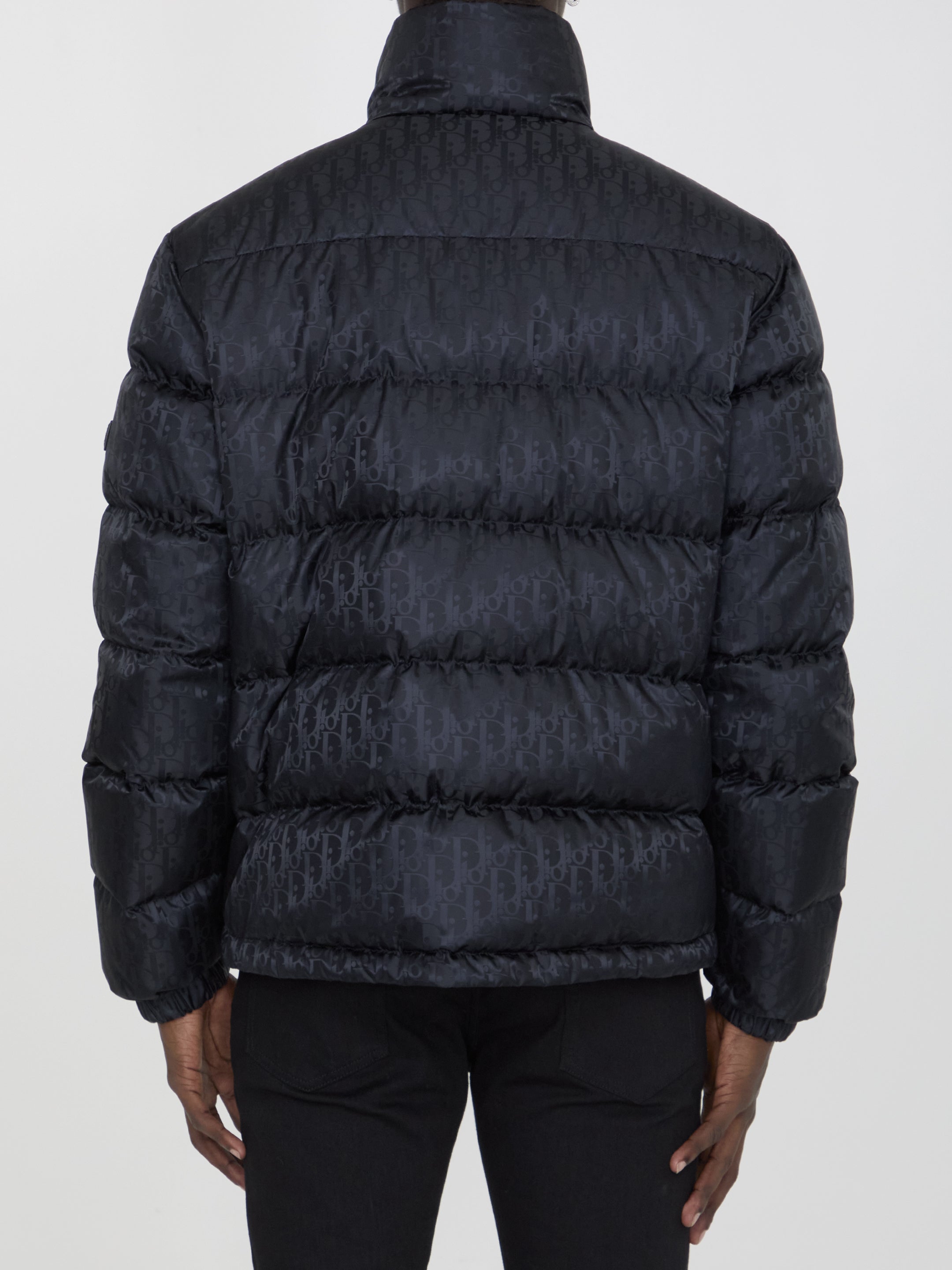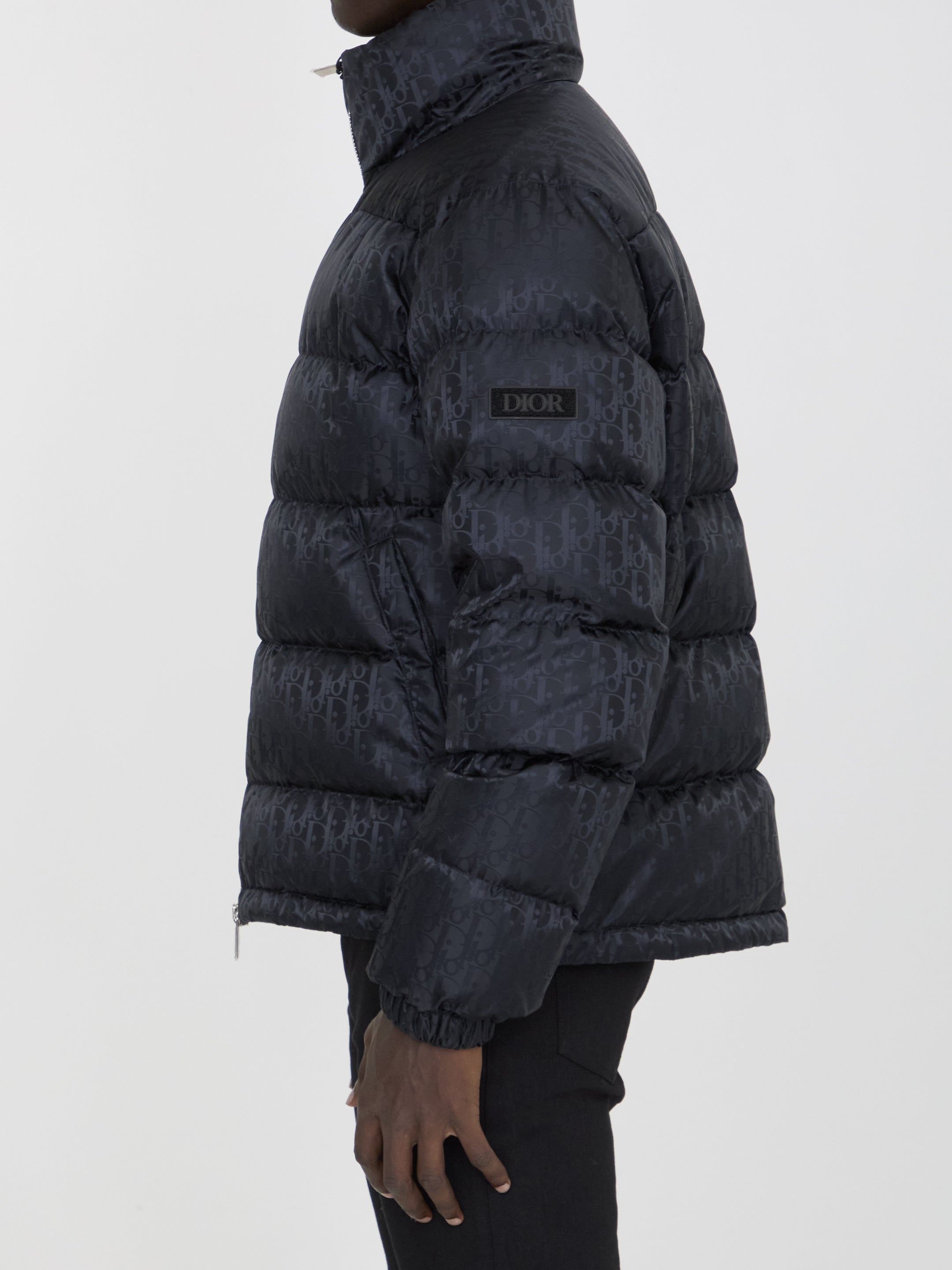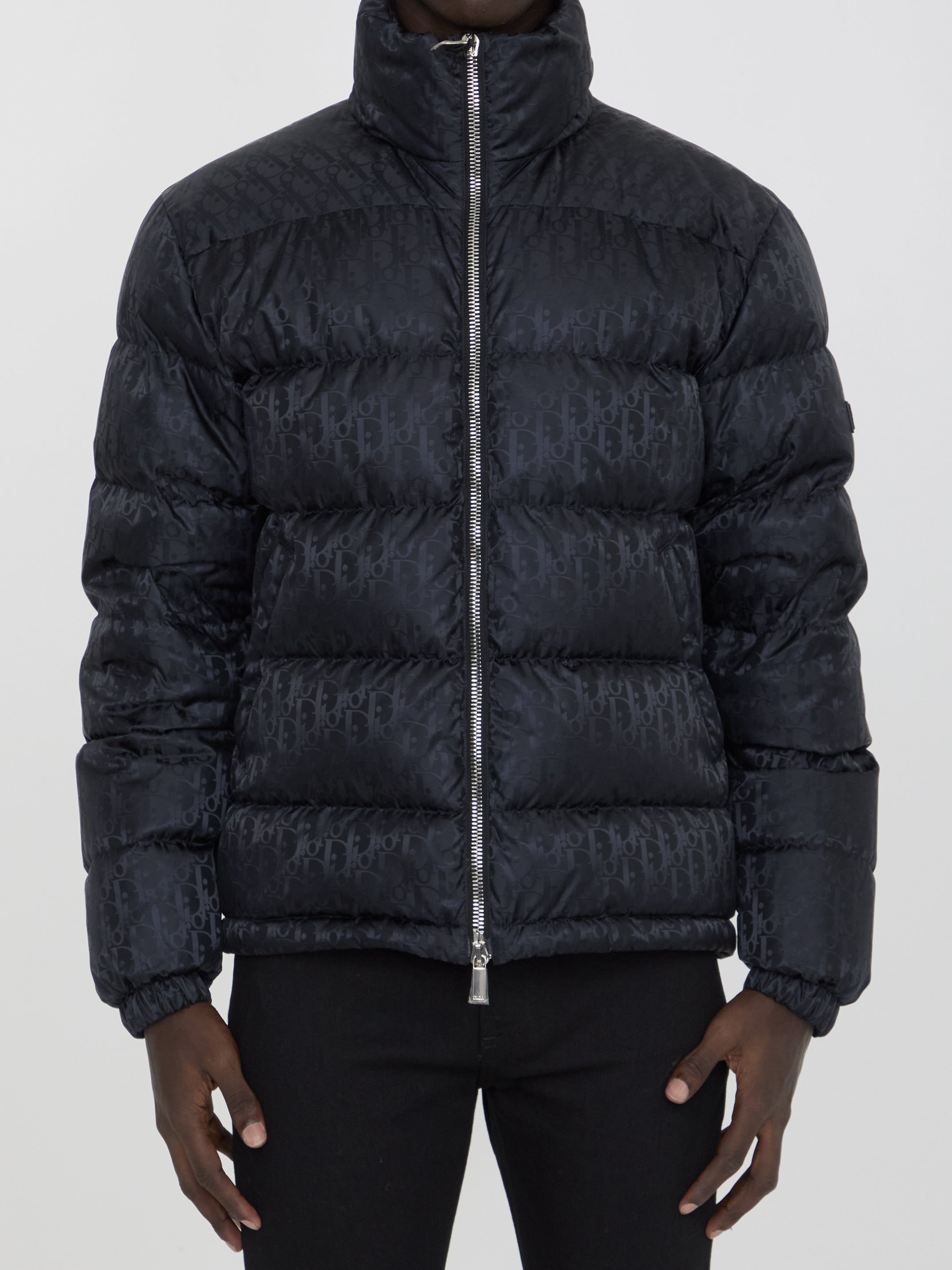 BLACK TECHNICAL NYLON PUFFER JACKET WITH ALL-OVER DIOR OBLIQUE JACQUARD MOTIF. IT FEATURES STAND-UP COLLAR, FRONT TWO-WAY ZIP CLOSURE, TWO SIDE WELT POCKETS AND DIOR PATCH ON LEFT SLEEVE. REGULAR FIT.