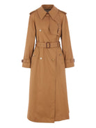 CHLOE DOUBLE-BREASTED BELTED TRENCH COAT BROWN COTTON VISCOSE COTTON TRENCH COATS AND RAINCOATS COATS CLOTHING WOMEN