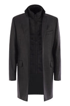 A MEETING POINT BETWEEN SARTORIAL ELEGANCE AND URBAN FUNCTIONALITY, THE ICONIC DOUBLE COAT REDEFINES THE CANONS OF CLASSIC STYLE BY INTRODUCING THE SEASONLESS CONCEPT OF 3-IN-1 LAYERING TO THE FORMAL WARDROBE. WITH THREE BUTTONS, IT IS MADE OF WOOL AND CASHMERE BLEND CLOTH AND FEATURES A POCKET SQUARE, FLAP POCKETS AND A BACK VENT. THE REMOVABLE INNER WAISTCOAT, PADDED WITH ULTRA-LIGHT TECHNICAL WADDING, CAN ALSO BE WORN SEPARATELY. A DOUBLE INNER POCKET COMPLETES THE GARMENT. - REMOVABLE INNER WAISTCOAT - WAISTCOAT ZIP FASTENING - COAT BUTTON FASTENING DESIGNER ID: NAM53511390GAHB801