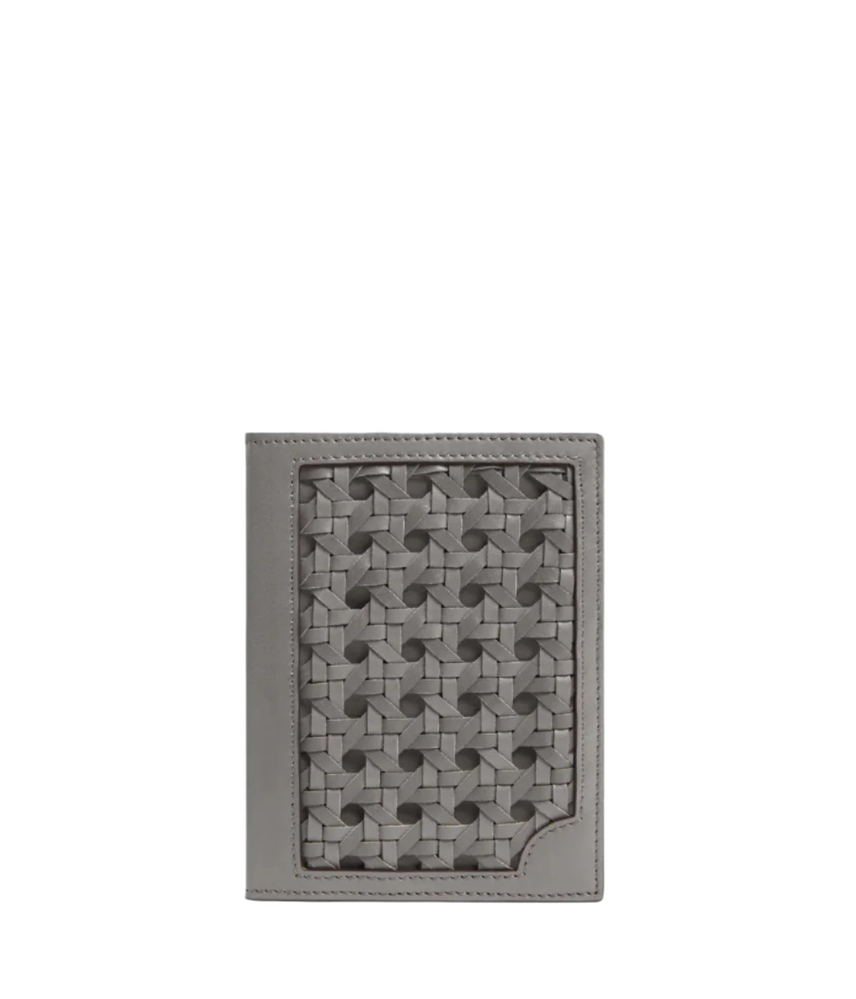 Double Passport Wallet in calfskin with Paglia di Vienna weave. Internal card slots and pockets for two Passports. Optional monogramming in frontal quadrant.