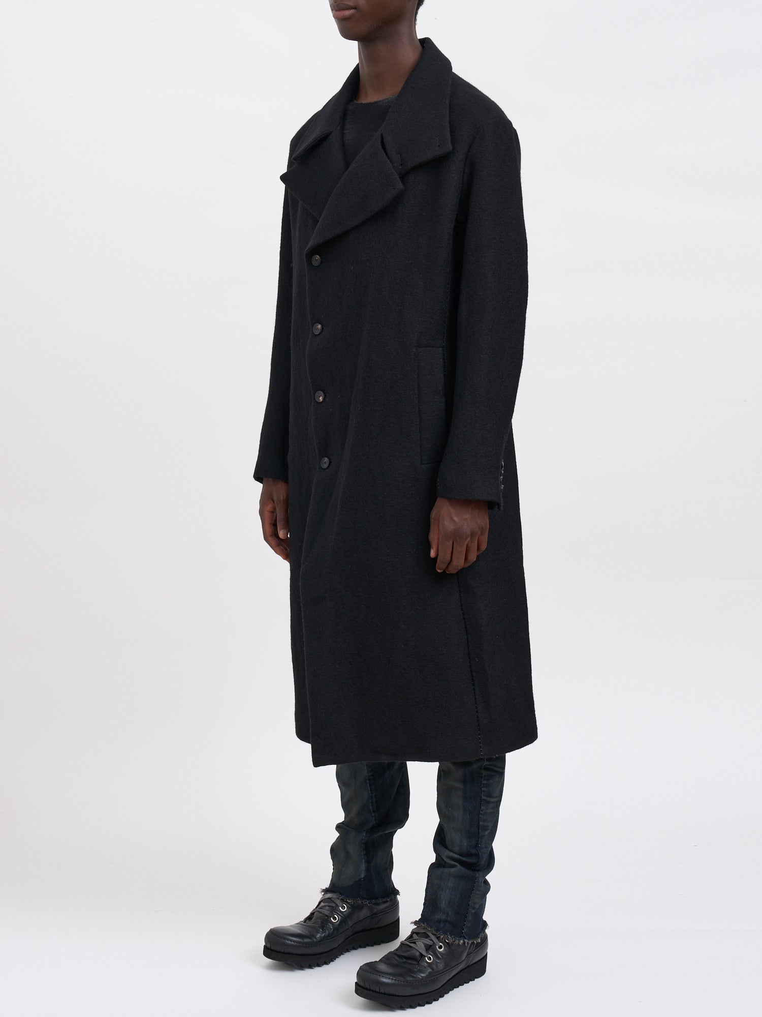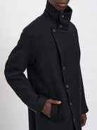 Elevate your outerwear collection with this sophisticated double-breasted wool coat from Masnada. Crafted from premium wool, this long-length coat features a refined v-neck collar and practical side button closure for a modern take on classic tailoring. The side pockets add functional elegance while maintaining the coat's sleek silhouette.