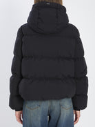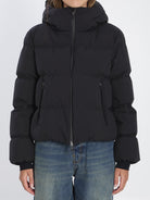 DOUBLE-LAYER PADDED DOWN JACKET IN BLACK. FEATURES REMOVABLE HOOD, ZIP AND SNAP-BUTTON CLOSURE, SIDE ZIP POCKETS, DRAWSTRING HEM, SIDE ZIPPERS, AND DOUBLE CUFFS. CROPPED STYLE. REGULAR FIT.