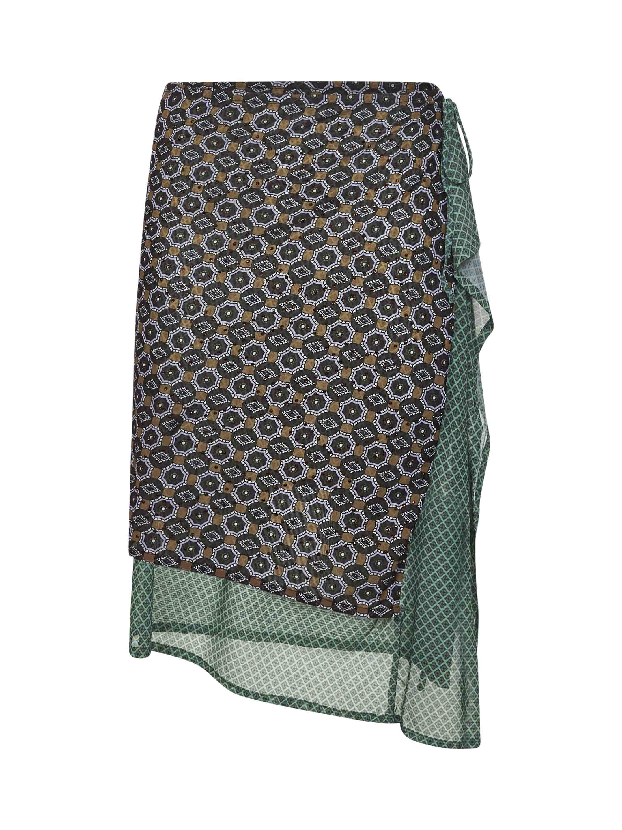 This stunning midi skirt is a perfect blend of style and comfort. Crafted from knee-length double-layer elasticated nylon mesh, it features a vibrant Mini Tie print that adds a playful touch to your wardrobe.