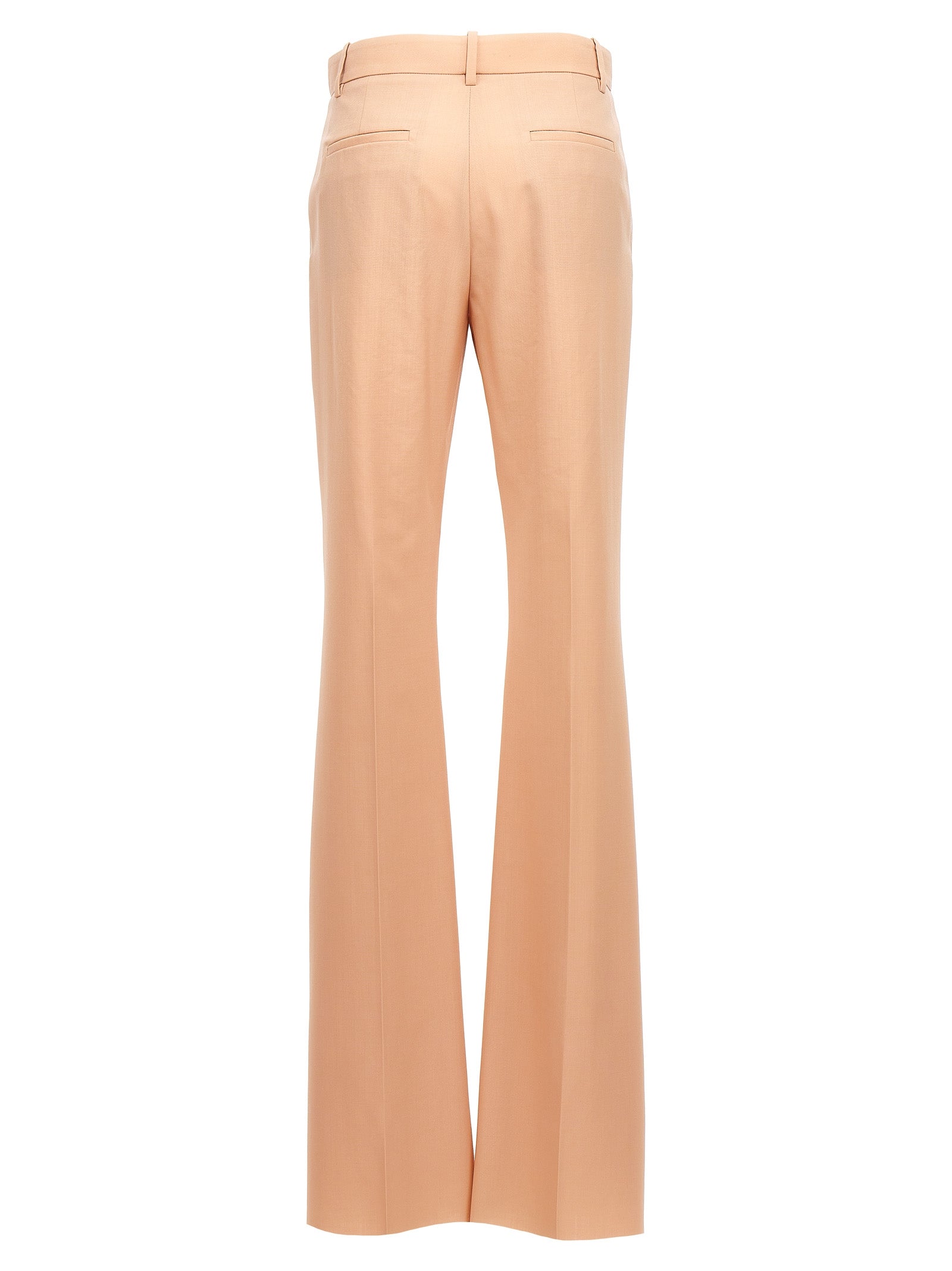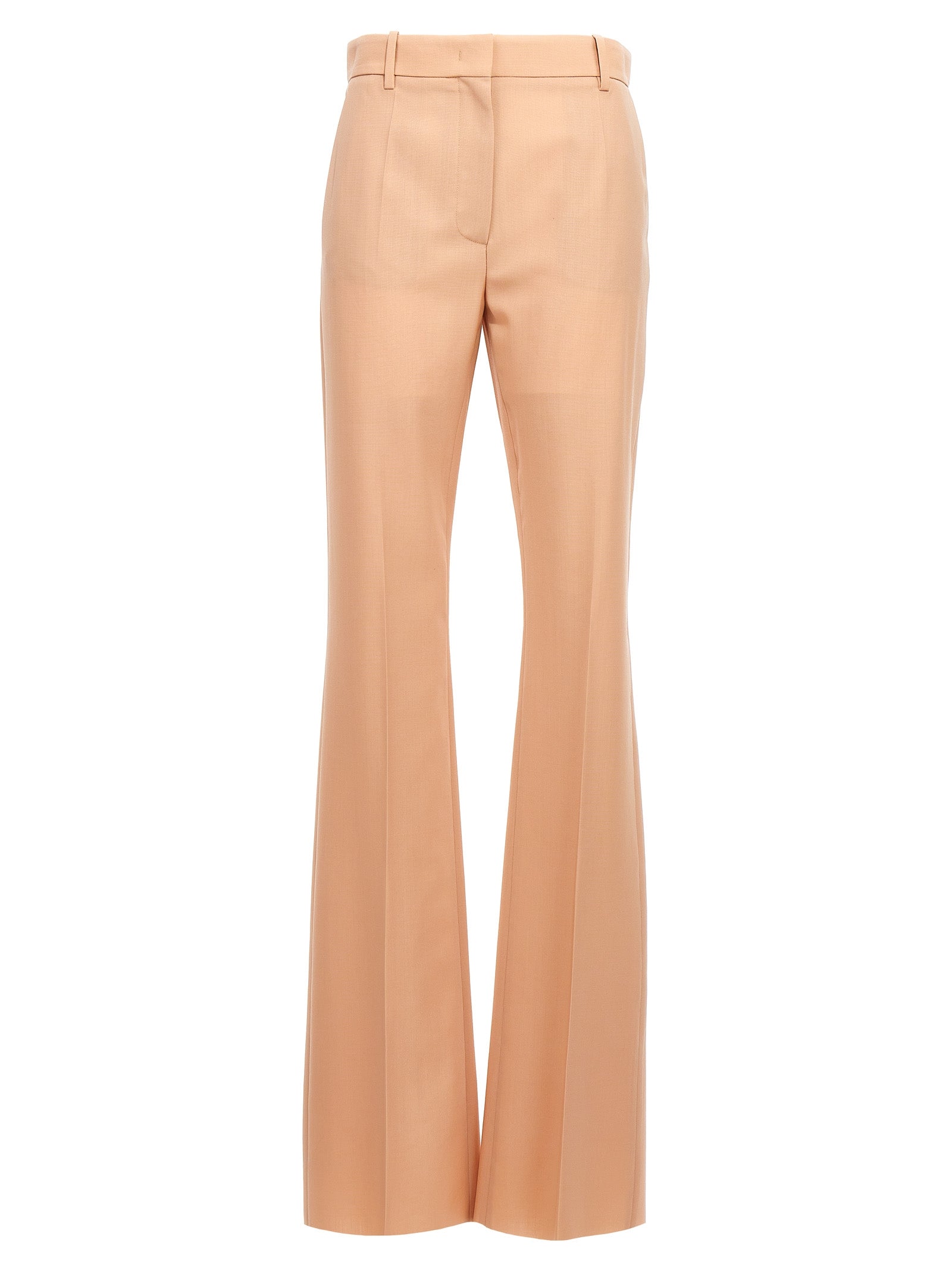Featuring a flattering flared silhouette in a versatile peach tone, these tailored pants offer both elegance and comfort for the modern professional. The classic front zip and hook-and-over closure ensure a polished fit, while functional pockets add practical appeal.