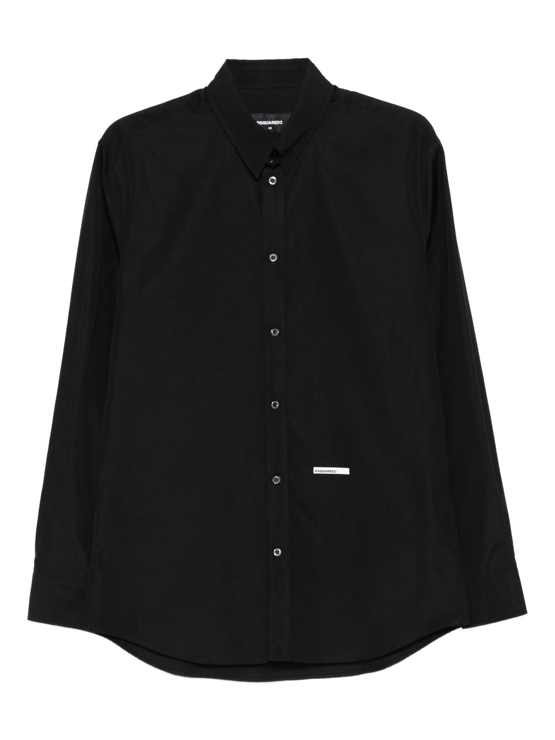 Elevate your wardrobe with this sophisticated cotton shirt from DSQUARED2. Crafted in a timeless black hue, this long-sleeved button-up features a classic shirt collar and subtle logo detailing that adds a touch of designer distinction.