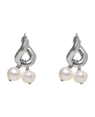 Finished in gleaming silver, these dangle earrings offer versatile styling options that transition seamlessly from day to evening. The delicate pearl accents add a touch of timeless elegance, while the modern chain construction brings an architectural edge to your look.