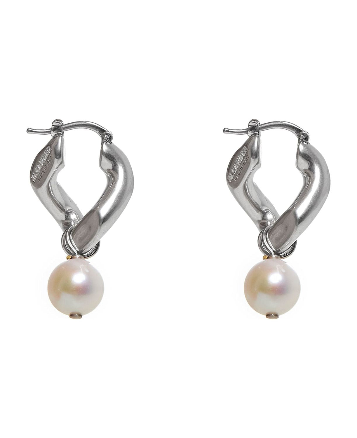 Elevate your jewelry collection with these sophisticated chain earrings from Jil Sander. Each earring features an elegant looped chain design adorned with two lustrous pearls, creating a refined and contemporary aesthetic.