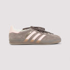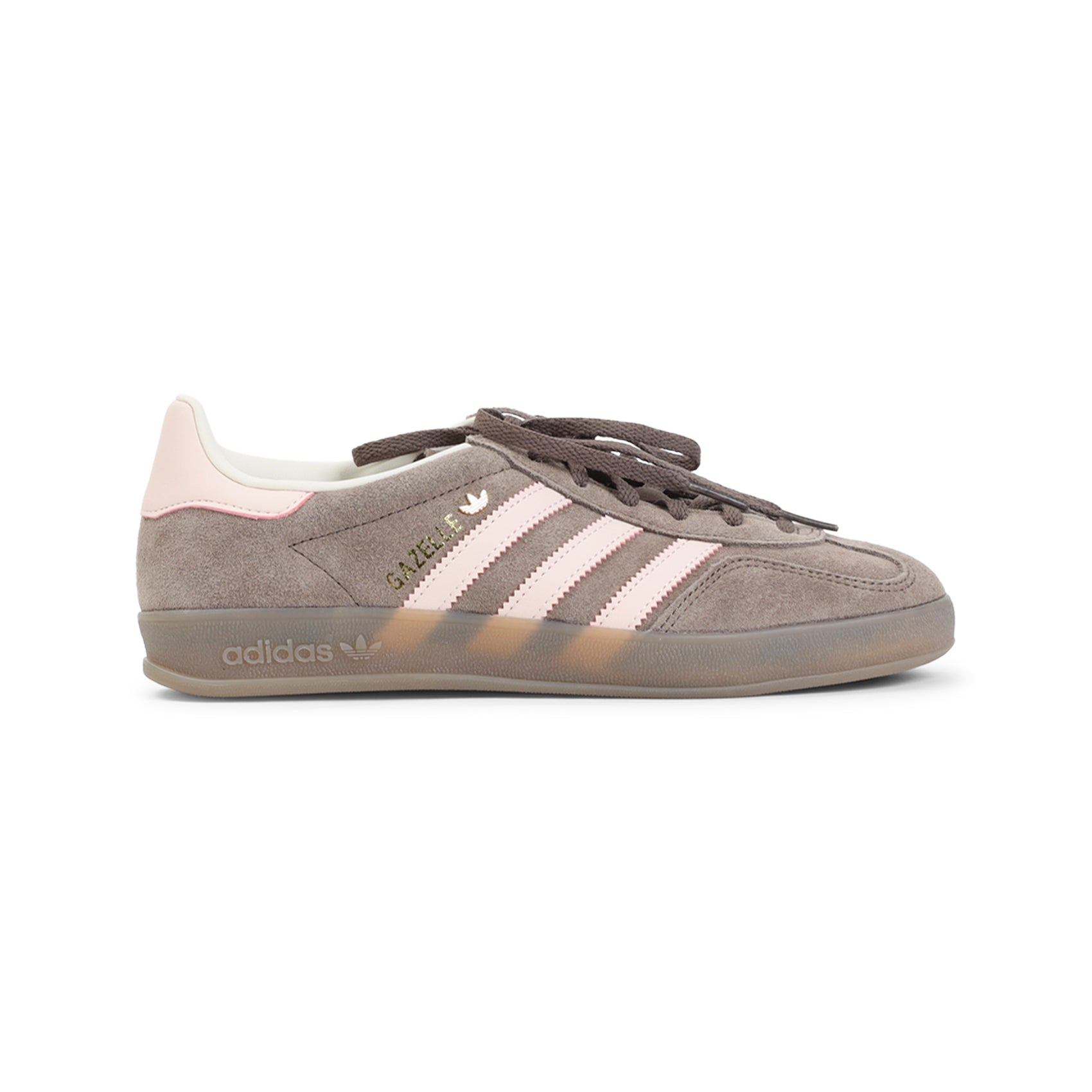 ADIDAS EARTH STRATA BROWN LEATHER GAZELLE SNEAKERS. EARTH STRATA BROWN LEATHER SNEAKERS, ROUND TOE, TOP TONAL LACE-UP FASTENING, PATCH LOGO ON THE TONGUE, SIDE CONTRASTING WONDER QUARTS PINK STRAPS, SIDE GOLD-TONE LETTERING LOGO, BACK WONDER QUARTS PINK DETAIL ON THE HEEL. TONAL RUBBER SOLE WITH SIDE EMBOSSED LOGO.