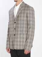 CELINE EBENE IVOIRE GREY WOOL VESTE JUNIOR DEMI-PLASTRON JACKET. CRAFTED IN WOOL AND CASHMERE BLEND, NOTCHED COLLAR, FRONT BUTTONED FASTENING, SIDE FLAP POCKETS, LONG SLEEVES, BUTTONED CUFFS, ROUND HEM. CHECKED PATTERN ALL-OVER, BLACK FULLY VISCOSE LINING.