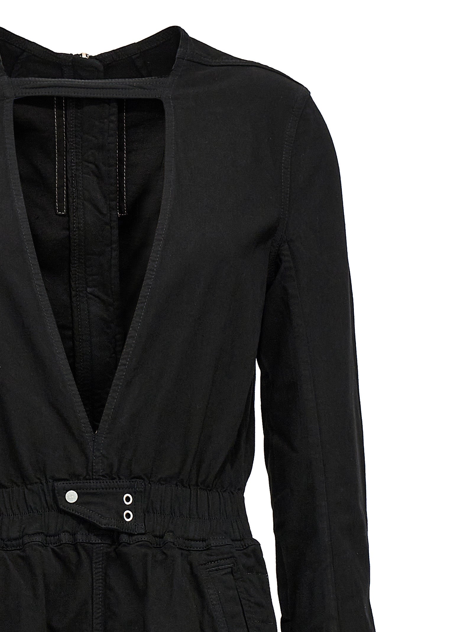 Introducing the 'Eclipse Bodybag' one-piece jumpsuit from DRKSHDW, Rick Owens' coveted streetwear line. This avant-garde bodysuit is crafted from coated canvas for an edgy, modern aesthetic.