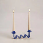Wavy Electric Blue metal candle holder for two taper holders. Fair Trade Certified.