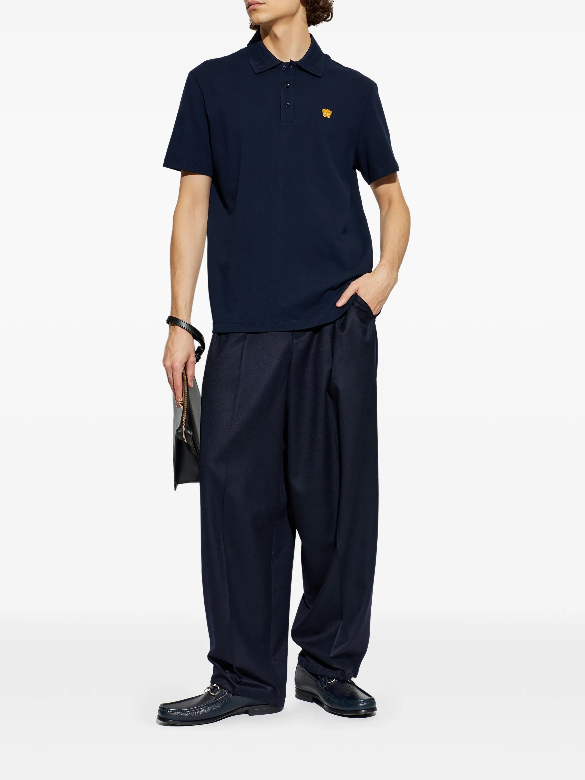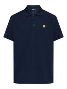 Elevate your casual wardrobe with this sophisticated Embroidered Cotton Piqué Polo from Versace. Crafted from 100% premium cotton in a classic piqué weave, this polo features the iconic Medusa patch embroidery that adds a luxurious designer touch.