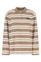 This luxurious Miu Miu embroidered cotton polo shirt features classic striped detailing in neutral tones with sophisticated long sleeves.