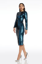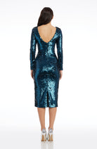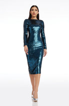 The Emery Dress will shine at your next special occasion with its round neck and long sleeve body-con design. Delicate sequins cover the entirety of the midi length dress, catching the light with every step you take. Enjoy the perfect blend of comfort and function while you show off your most fashionable look.