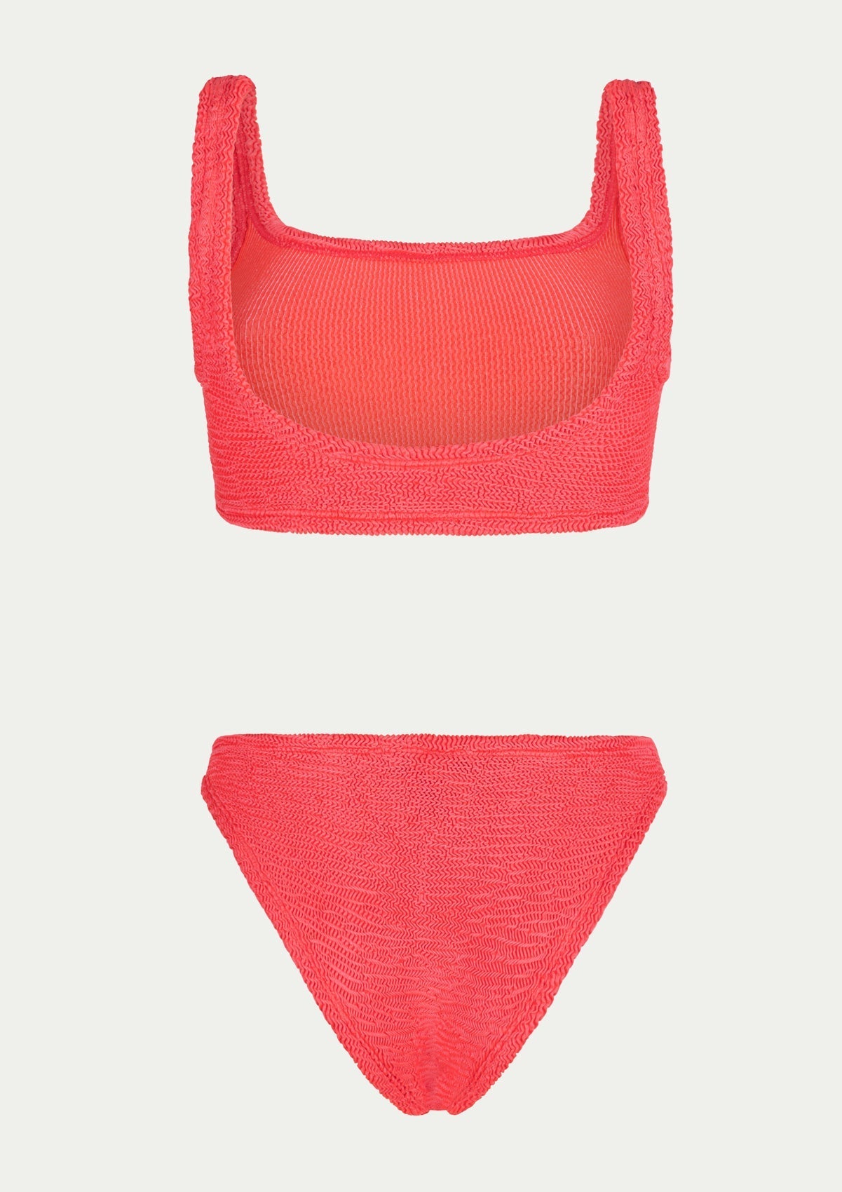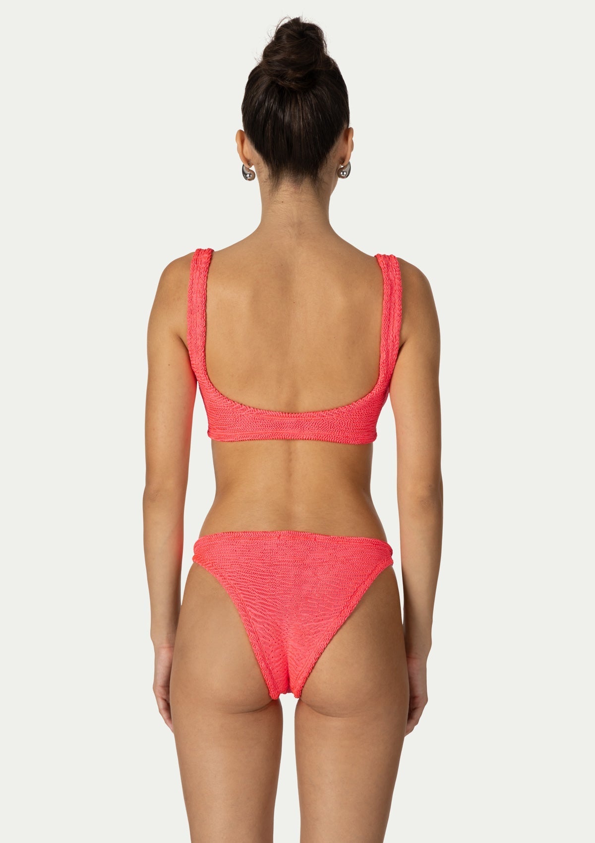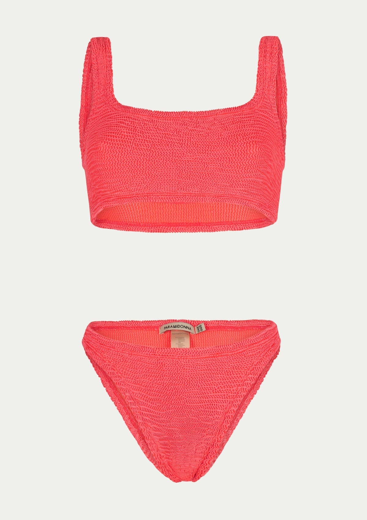 Two-piece swimsuit set EMILY by PARAMIDONNA. The universal size of the model fits sizes XS to 2X. The top of the model is a type of square, sport bustier with straps and the bottoms are mid-cut with low waist. The EMILY Half Swimsuit are great for women of all chest sizes, always fitting great, providing comfort. This classic swimsuit set is a favourite for ladies of all body types and is one of the brand's best sellers.