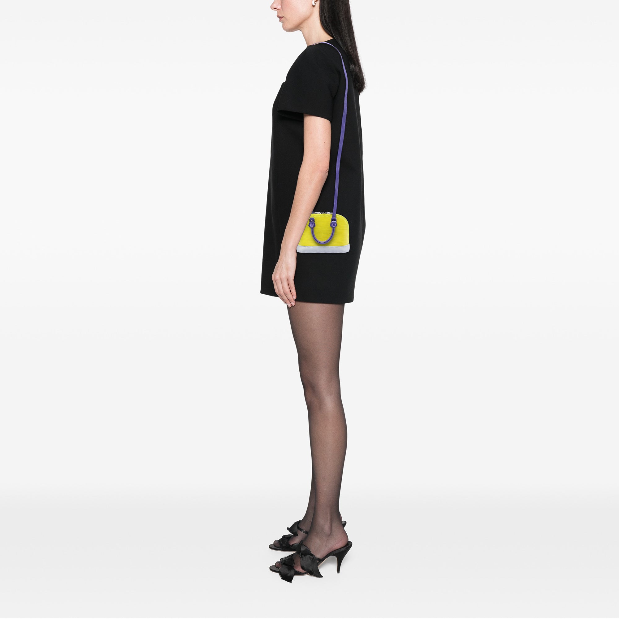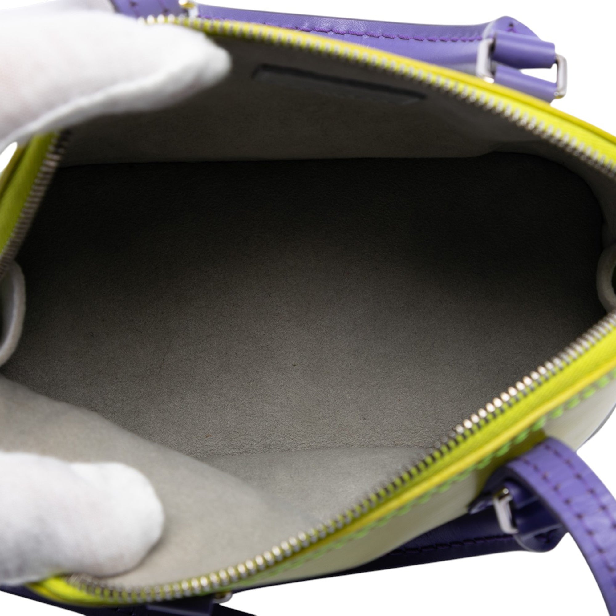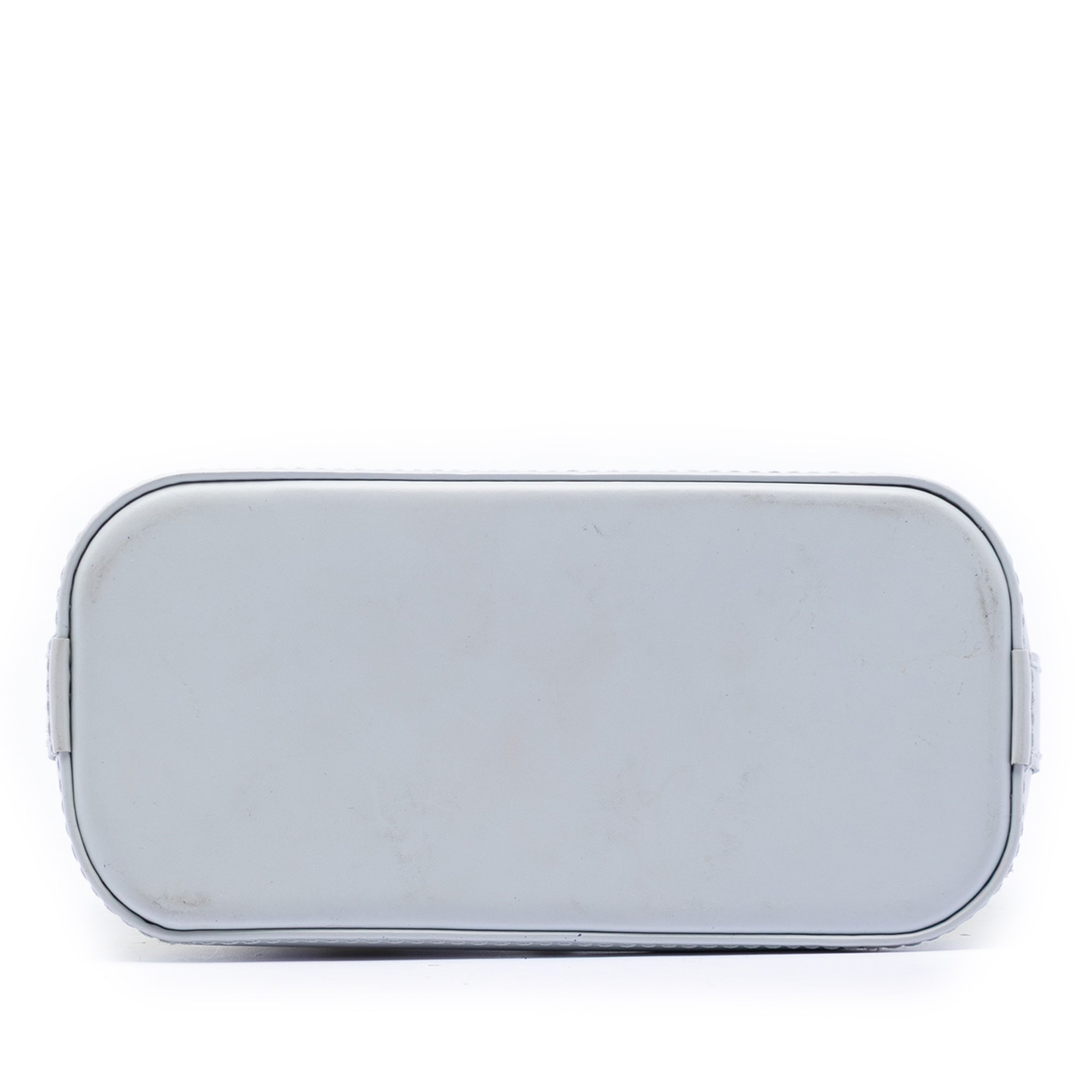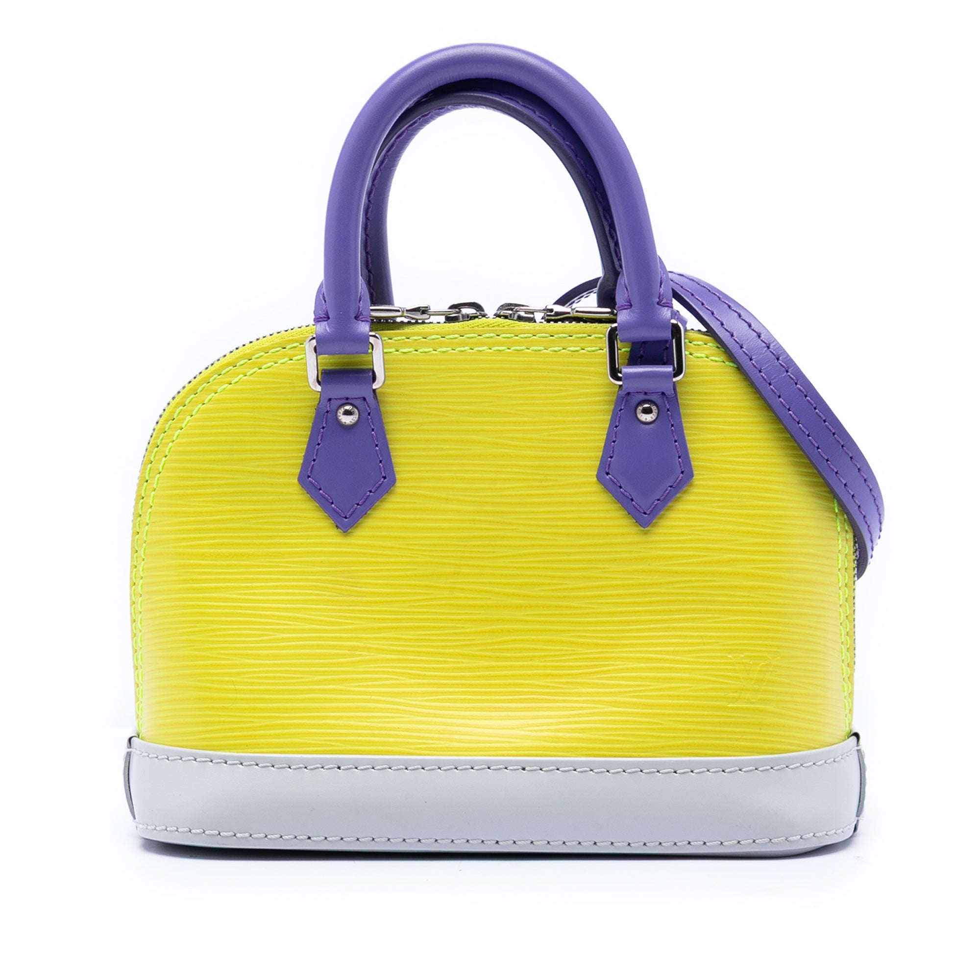 The Alma features an epi leather body, rolled leather handles, a detachable and adjustable flat leather strap, and a two-way zip around closure.