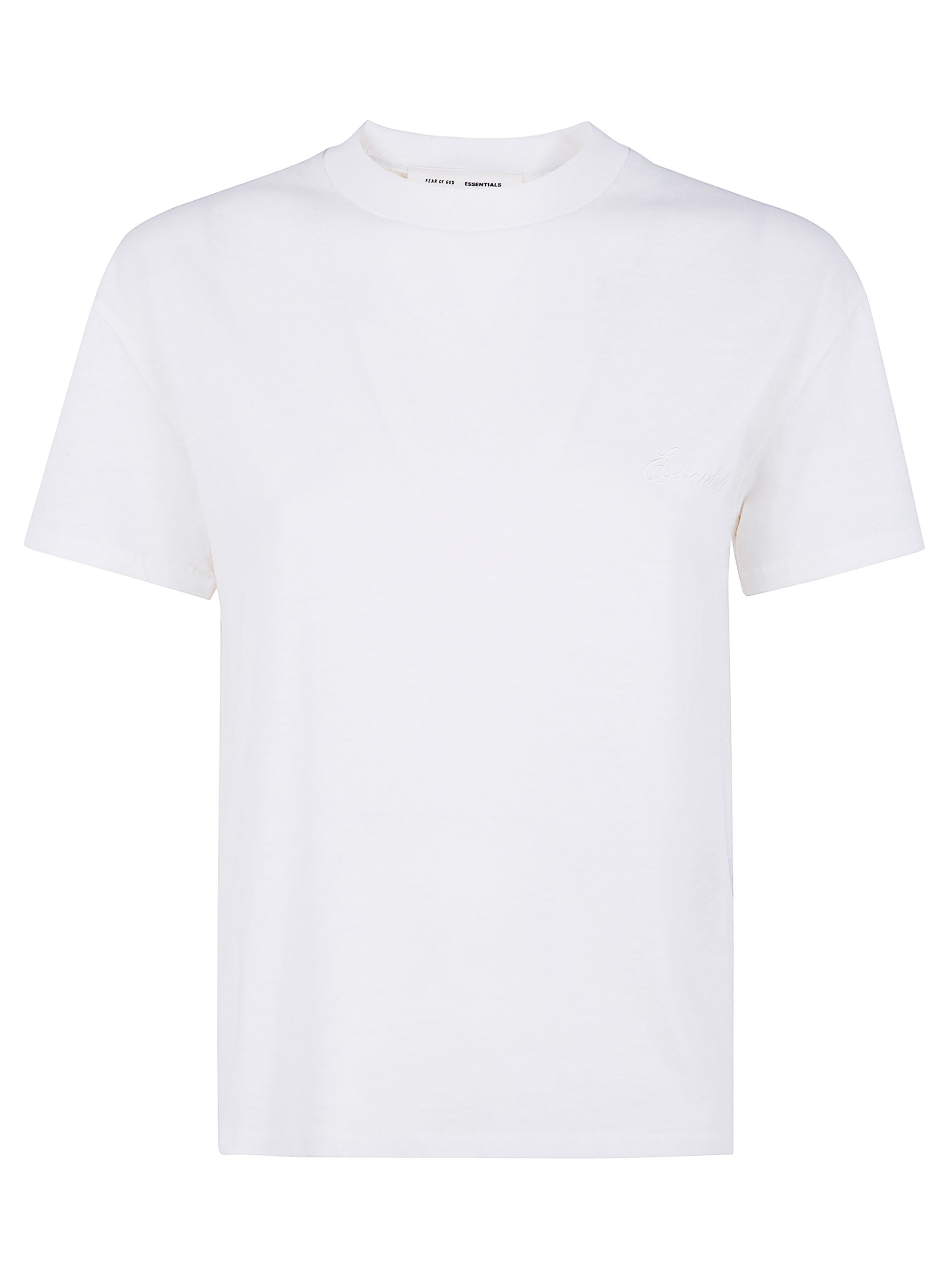 A MODERN LOUNGEWEAR STAPLE, THE ESSENTIALS FEAR OF GOD WOMEN’S CLASSIC TEE IS CRAFTED IN LIGHTWEIGHT JERSEY WITH A RELAXED FIT. FEATURING A RIB-KNIT CREWNECK AND EMBROIDERED “ESSENTIALS” LOGO ON THE FRONT, IT BLENDS COMFORT AND MINIMALIST STYLE. THE BACK COLLAR LABEL ADDS A SUBTLE DESIGNER TOUCH.