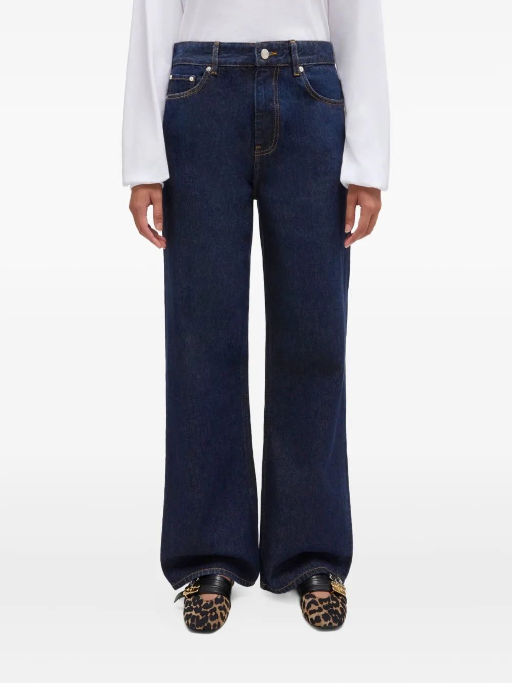 Elevate your denim collection with the ESSENTIALS RINSE DENIM LARI from Ganni. These wide-leg jeans feature a classic dark rinse wash and a relaxed, contemporary silhouette that effortlessly combines comfort with style.