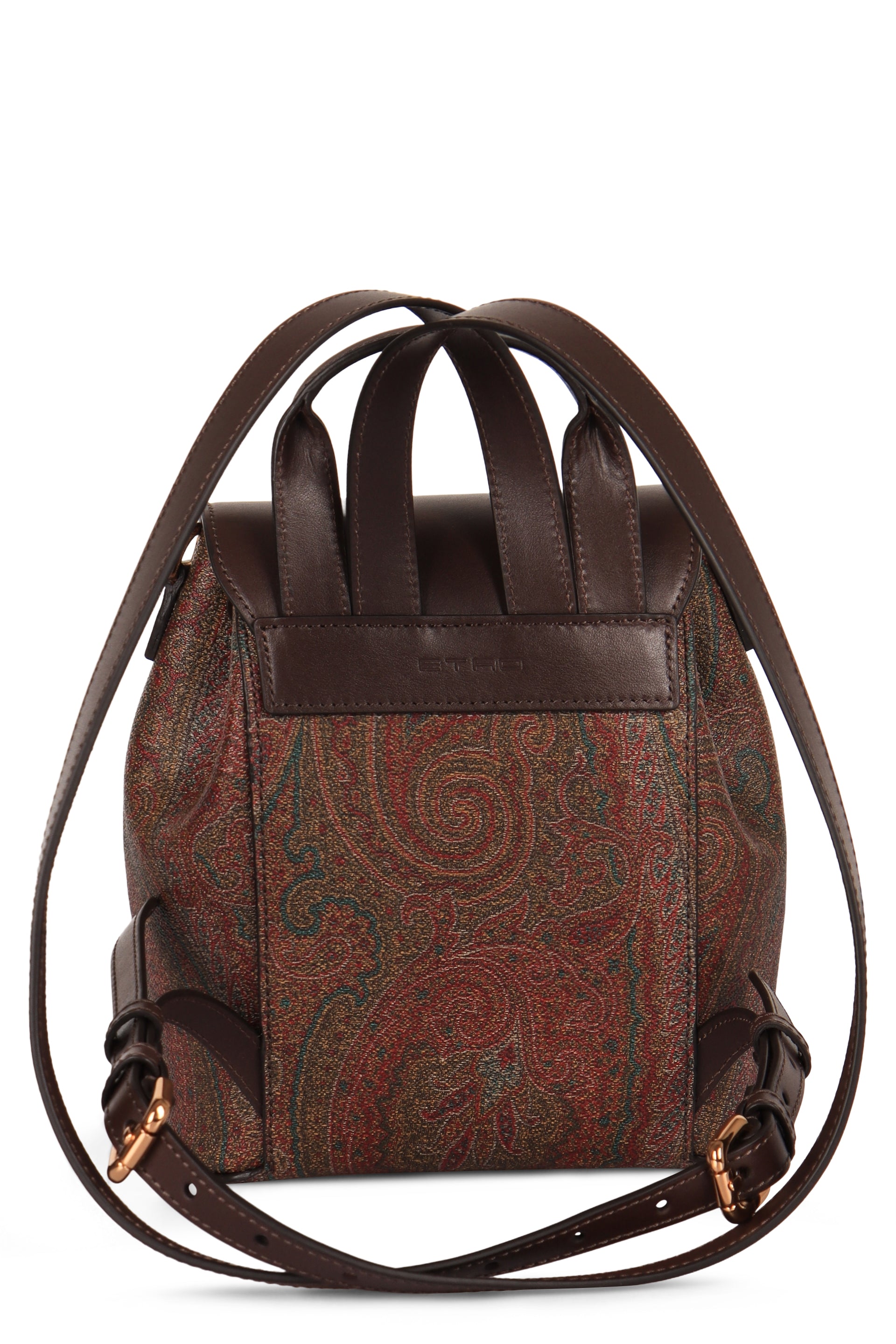 BACKPACK WITH A COMPACT DESIGN MADE OF THE ICONIC PAISLEY JACQUARD FABRIC WITH LEATHER DETAILS. THE ACCESSORY, EQUIPPED WITH ADJUSTABLE STRAPS, FEATURES A CLOSURE WITH A SNAP BUTTON FINISHED WITH THE EMBLEMATIC METAL COIN DEPICTING PEGASUS, OBTAINED THROUGH MINTING. THE DESIGN IS COMPLETED WITH THE MAISON'S LOGO PRINTED ON THE BACK.