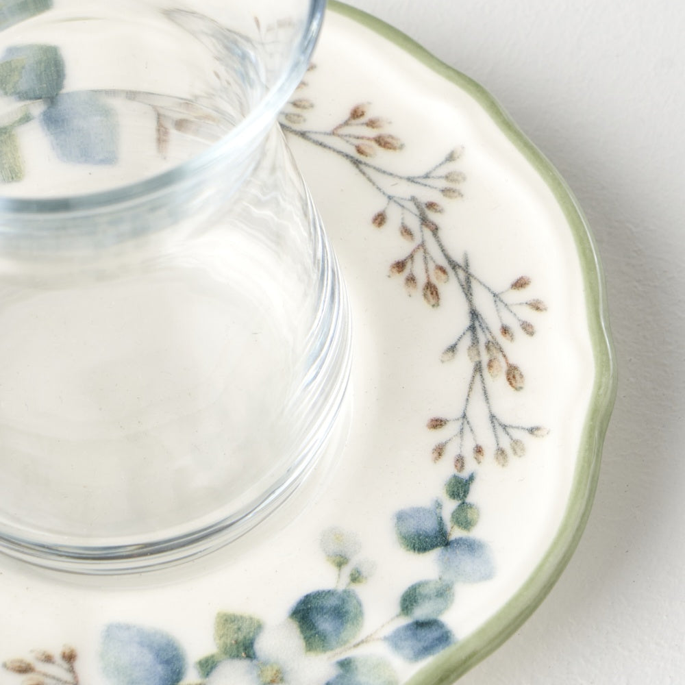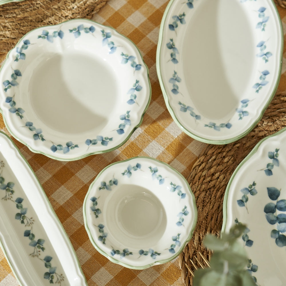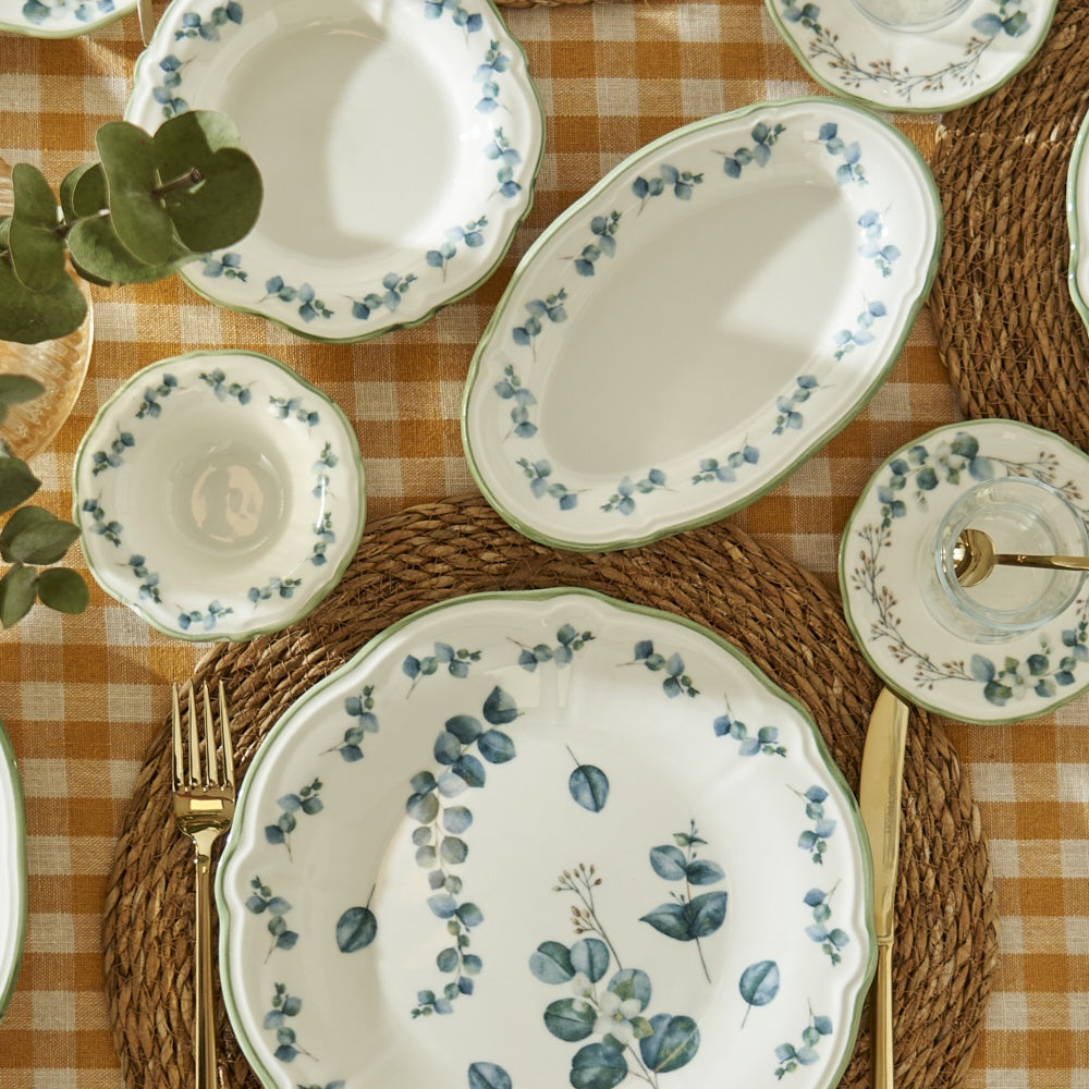- 26-piece breakfast set for 6 with a eucalyptus flower pattern