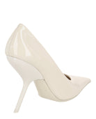 These sophisticated pumps feature a sleek pointed toe silhouette and a distinctive curved heel that stands at 4.25 inches, creating a graceful and elongating effect. Crafted from luxurious patent calfskin leather with a high-shine finish, these pumps exude refinement and modern glamour.