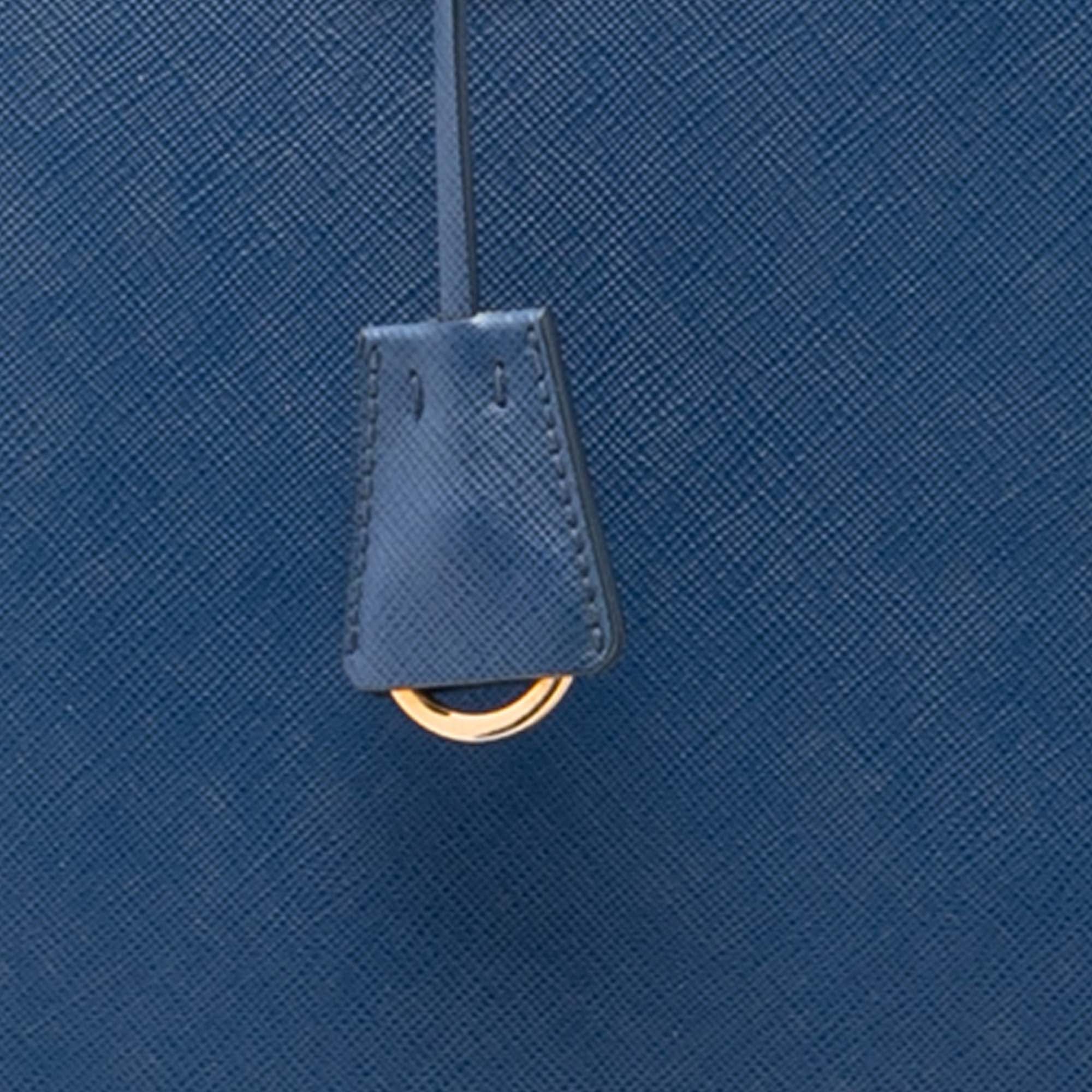 Elevate your everyday style with this Extra Large Saffiano Lux Promenade Satchel from Prada. Crafted from luxurious saffiano leather, this sophisticated satchel features elegant rolled leather handles and a practical double zip-around closure for secure storage.