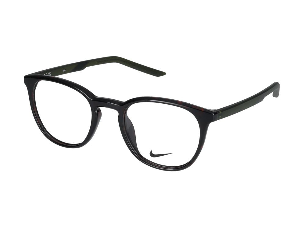Elevate your everyday look with these sophisticated Nike eyeglasses in a distinctive tortoise and matte rough green colorway. These frames combine Nike's renowned athletic heritage with contemporary style, featuring a classic round shape that flatters a variety of face shapes.