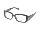 Elevate your everyday style with these sophisticated Gucci GG1406O eyeglasses in classic black with transparent accents. These designer frames feature a timeless rectangular silhouette that complements any face shape, crafted with Gucci's signature attention to detail and quality.