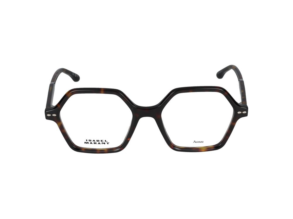 Elevate your everyday style with these sophisticated eyeglasses from Isabel Marant. Featuring a distinctive hexagonal frame in a timeless havana tortoiseshell finish, these optical frames blend contemporary design with classic elegance.