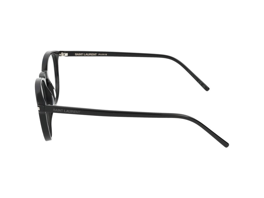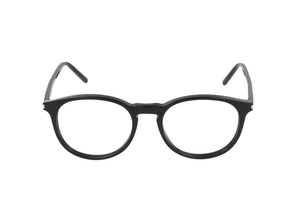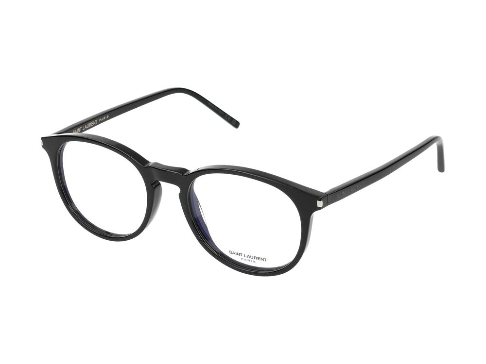 Elevate your everyday style with the Saint Laurent SL 106 eyeglasses in classic black. These sophisticated frames feature a timeless round shape with transparent lenses, perfect for adding an intellectual yet fashion-forward touch to any outfit.