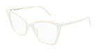 These sophisticated eyeglasses feature a modern square silhouette that flatters a variety of face shapes, crafted with Saint Laurent's signature attention to detail and luxury craftsmanship. The translucent white frame offers a fresh, contemporary aesthetic that pairs effortlessly with any wardrobe.