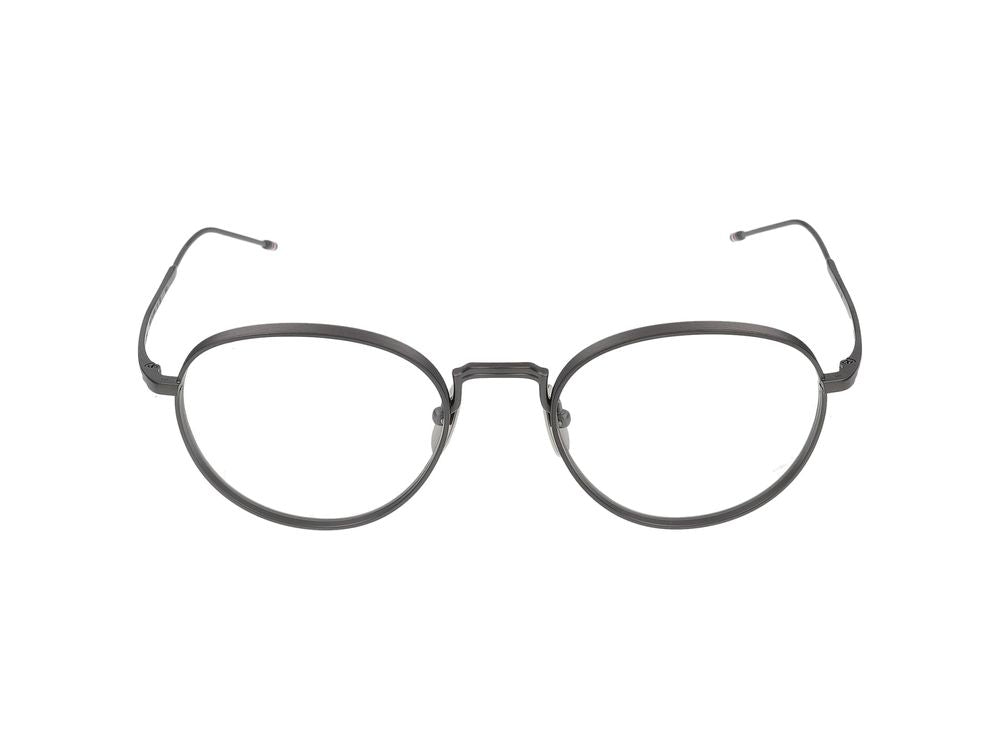Elevate your everyday style with these sophisticated Thom Browne eyeglasses. Featuring a timeless round frame design in sleek metal construction, these frames embody the brand's signature blend of classic American craftsmanship and modern refinement.