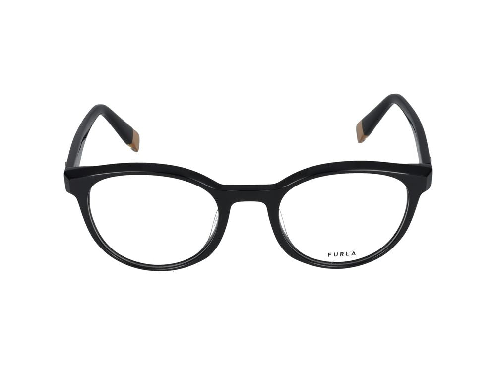 Elevate your everyday style with these sophisticated FURLA eyeglasses in glossy black. The classic rounded frame design offers timeless elegance while providing comfortable all-day wear.