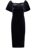 This stunning knee-length silhouette features flattering short sleeves and a refined scoop neckline, creating a polished look that's perfect for your most memorable occasions. The rich velvet fabric catches the light beautifully, ensuring you'll make an unforgettable entrance at cocktail parties, wedding receptions, or evening soirees.
