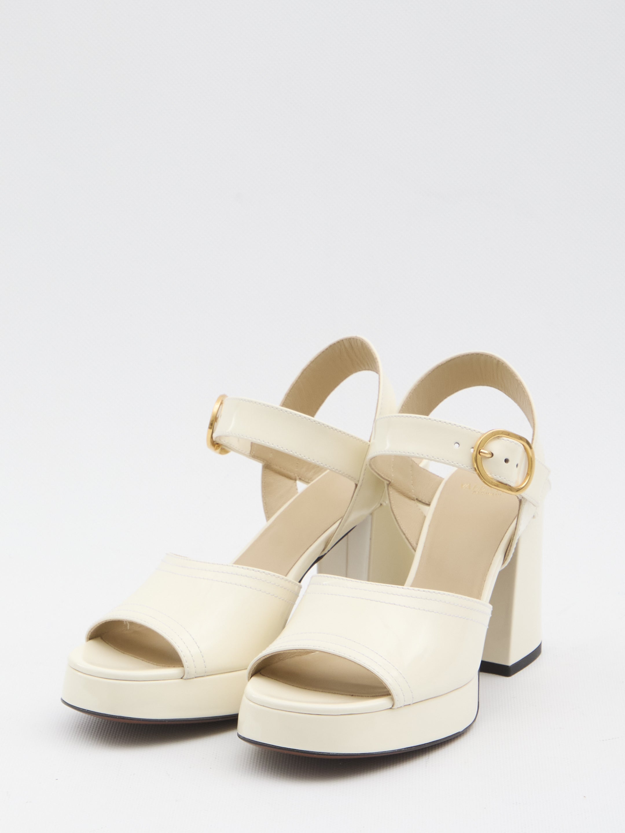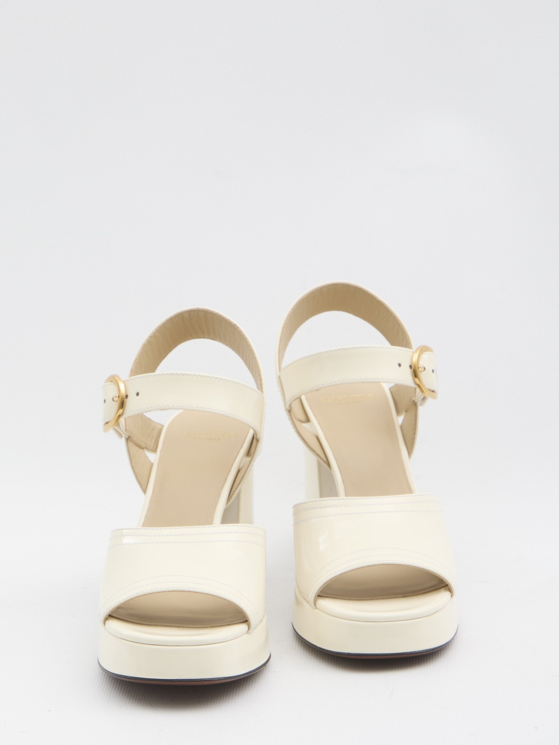 FAWCETTE PLATFORM SANDALS IN IVORY GLOSSY CALFSKIN LEATHER. THEY FEATURE A VLOGO SIGNATURE METAL DETAIL IN GOLD AT THE BACK, AN ADJUSTABLE BUCKLE STRAP, A WIDE HEEL AND PLATFORM, AND A LEATHER SOLE. DUSTBAG INCLUDED. ANY IMPERFECTIONS IN THE LEATHER SHOULD NOT BE CONSIDERED MANUFACTURING DEFECTS BUT RATHER A CHARACTERISTIC OF THE MATERIAL.