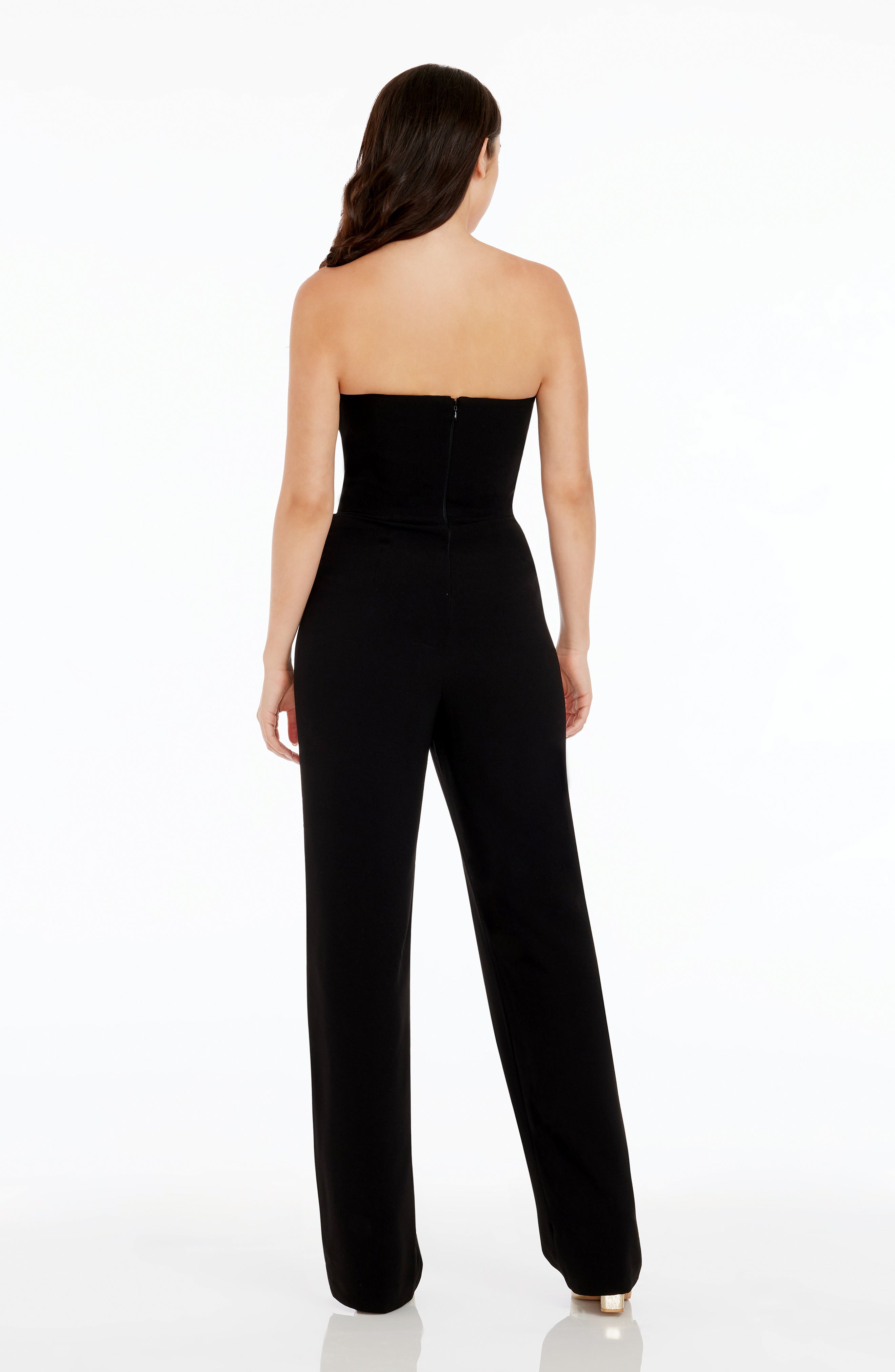 Strapless V-neck Straight Leg Jumpsuit with Tapered Waistline.