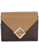 Elevate your everyday essentials with the FF Diamonds Wallet from Fendi. Crafted from smooth, full-grain calfskin leather in a sophisticated brown and beige colorway, this compact wallet features the iconic diagonal FF logo and a striking geometric flap design.