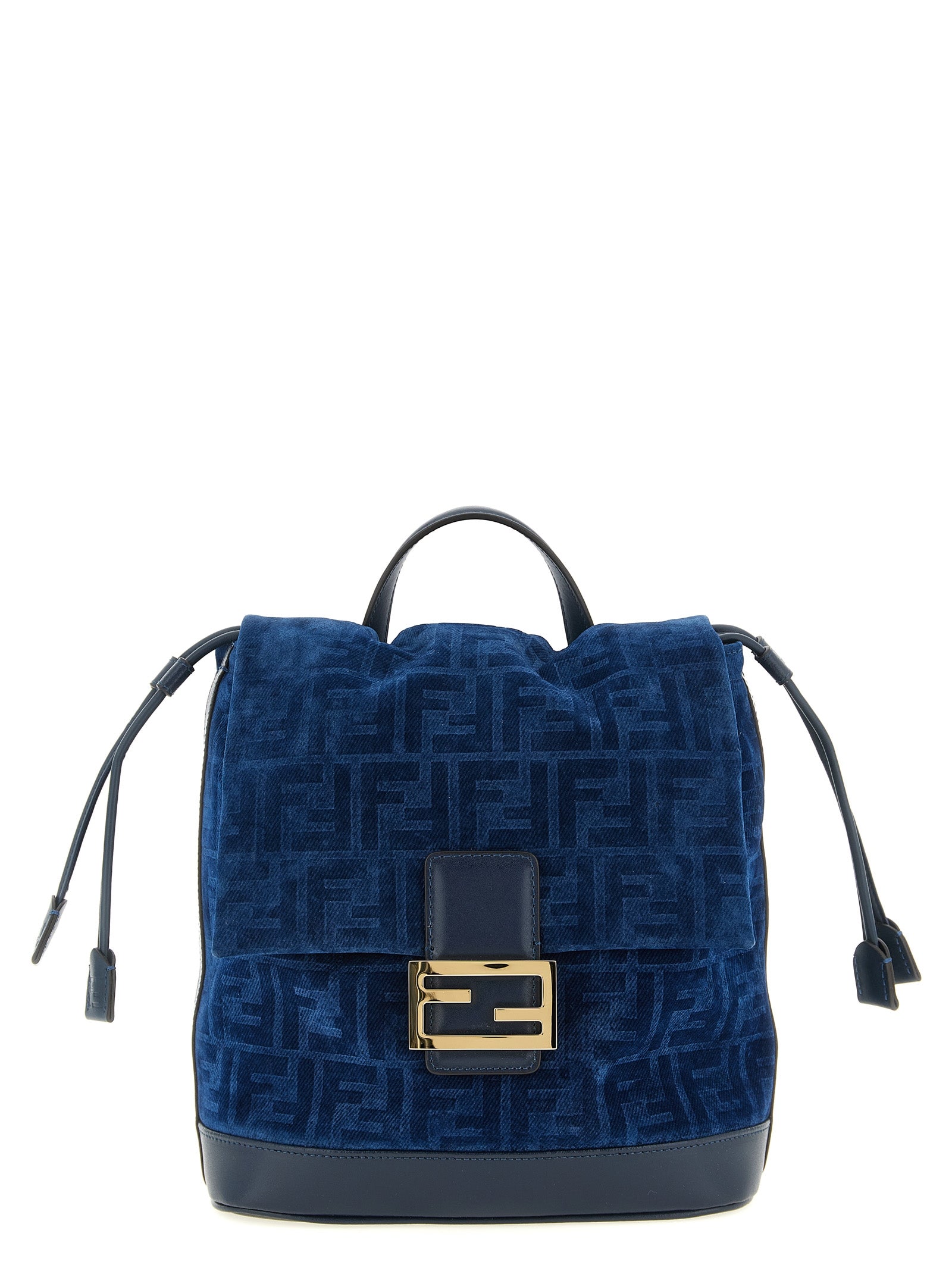 Elevate your everyday style with this exquisite FF flocked denim backpack from Fendi. Crafted from luxurious flocked cotton denim with tone-on-tone smooth calf leather accents, this backpack showcases the iconic FF monogram pattern in a sophisticated textured finish.