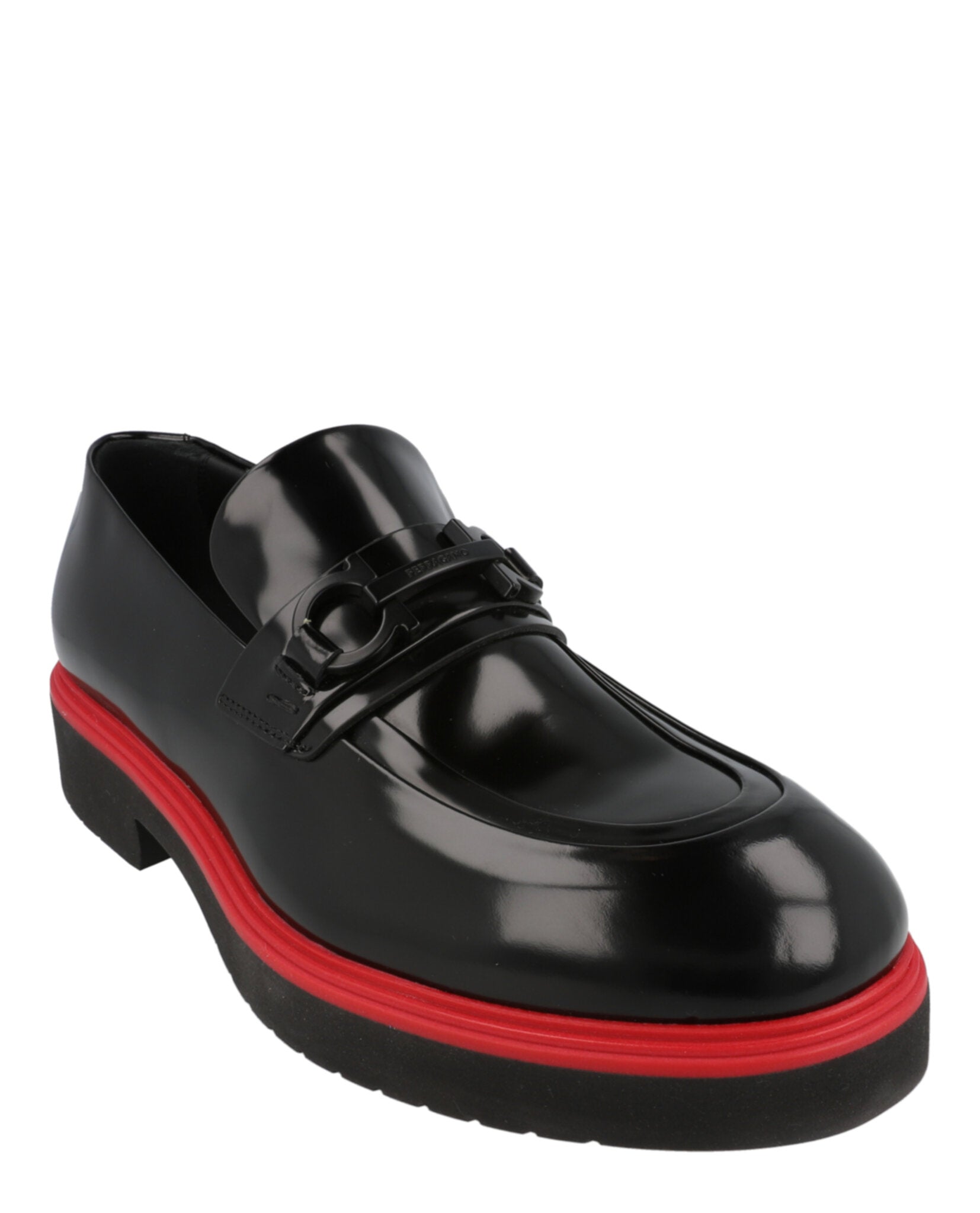 Elevate your everyday style with the Fiorello Gancini Patent Loafers from Ferragamo. These luxurious Italian-crafted loafers feature a sleek patent calfskin leather upper with the iconic Gancini logo buckle strap, adding a sophisticated touch to any ensemble.