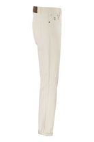 SEASONAL NUANCES ENRICH THE ICONIC STYLE OF THE FIVE-POCKET TROUSERS IN GARMENT-DYED DENIM, CHARACTERISED BY A PLEASANTLY LIGHT AND COMFORTABLE TEXTURE. THE TRADITIONAL FIT EXPRESSES THE MOST CLASSIC BRUNELLO CUCINELLI TASTE AND FEATURES REGULAR LINES ALL ALONG THE LEG. - TRADITIONAL FIT: THE FIT IS CHARACTERISED BY REGULAR VOLUMES ON THE PELVIS AND STRAIGHT LINES ALONG THE LEG - METAL BUTTON FASTENING - FRONT POCKETS WITH BREAST POCKET - PATCH BACK POCKETS - HEM 18 CM DESIGNER ID: M277PD3210 C7210