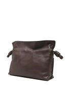 FLAMENCO CLUTCH BAG IN CHOCOLATE BROWN CALF NAPPA LEATHER. FEATURES AN ADJUSTABLE AND REMOVABLE SHOULDER STRAP, MAGNETIC AND DRAWSTRING CLOSURE WITH ICONIC KNOTS, GOLD EMBOSSED LOEWE LOGO, ONE MAIN COMPARTMENT, AND SUEDE LEATHER LINING. DUSTBAG INCLUDED. ANY IRREGULARITIES IN THE LEATHER ARE NOT TO BE CONSIDERED MANUFACTURING DEFECTS, BUT A CHARACTERISTIC OF THE MATERIAL.