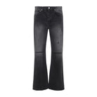 Elevate your denim collection with these striking flared jeans from Enfants Riches Deprimes. Crafted from premium cotton denim in a sophisticated dark wash, these jeans feature a dramatic flared leg silhouette that channels vintage '70s glamour with a modern edge.