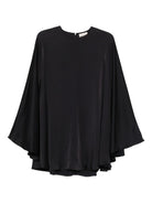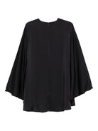 Make a statement with this dramatic Semicouture top featuring show-stopping flared sleeves that add movement and flair to your look. The classic crew neckline and sleek black hue create a versatile foundation, while the rear zip fastening ensures a polished, seamless silhouette.