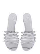 Elevate your warm-weather wardrobe with these stunning Flat Crystal Sandals from Giuseppe Zanotti. Featuring four delicate straps adorned with shimmering crystals, these sandals add a touch of glamour to any ensemble. With a comfortable 1.5 cm heel, they offer the perfect blend of luxury and wearability.